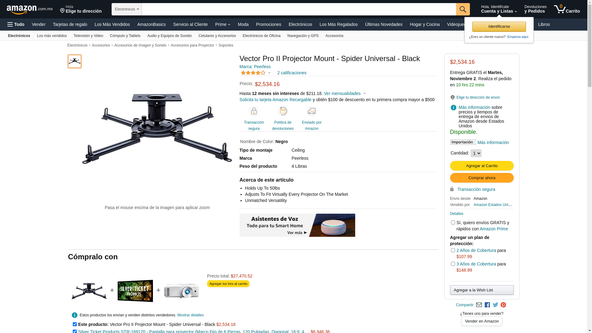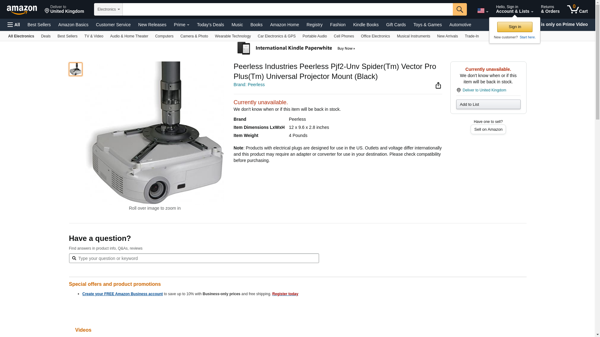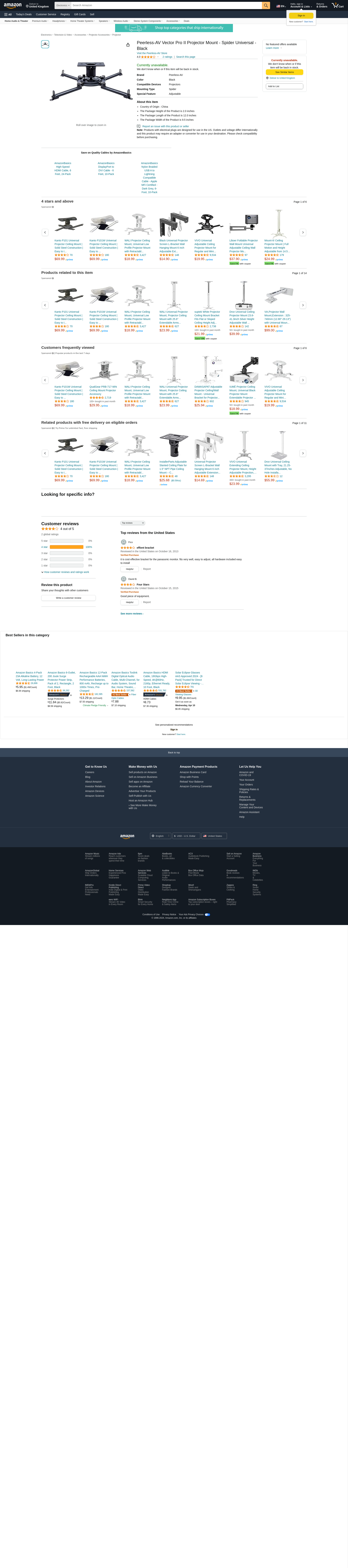 - Peerless Industries Peerless Pjf2-Unv Spider(Tm) Vector Pro Plus(Tm) Universal Projector Mount (Black)