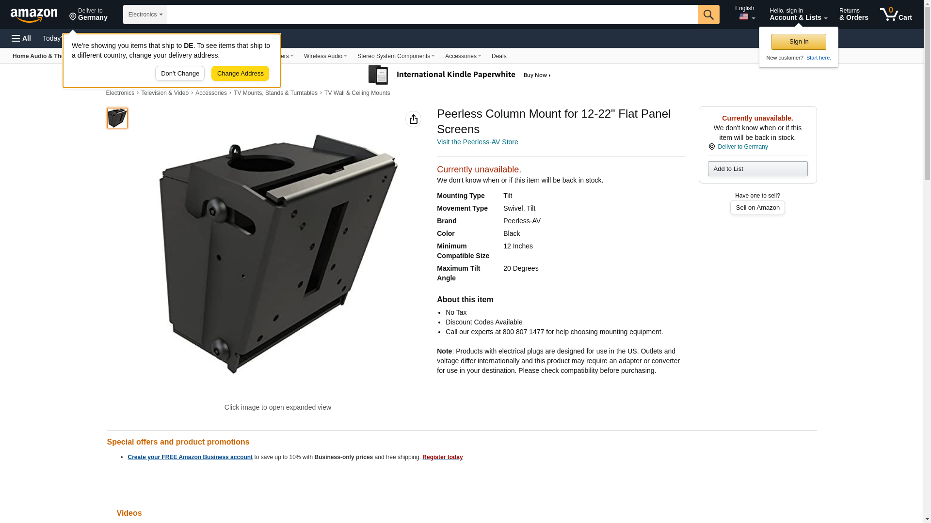 Peerless Column Mount for 12-22" Flat Panel Screens