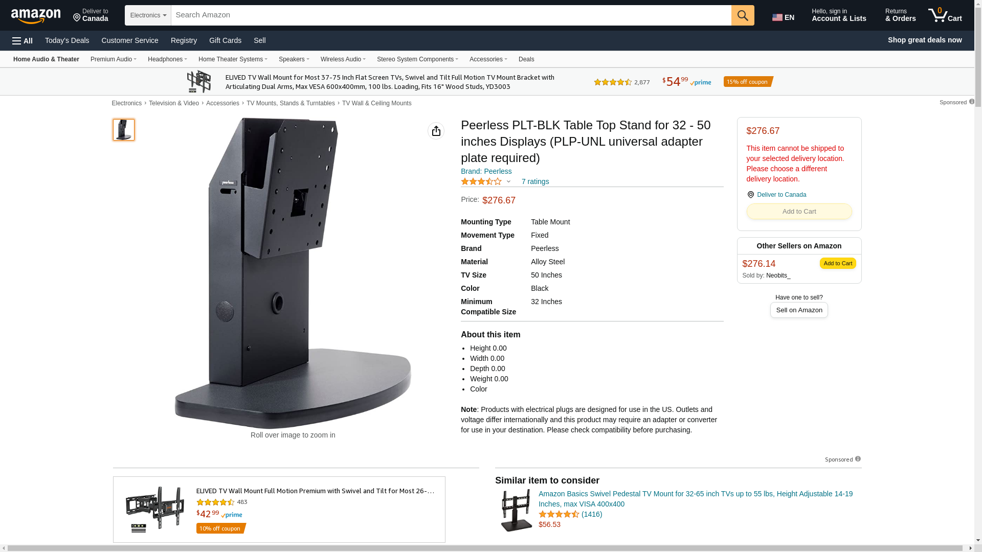 Peerless PLT-BLK Table Top Stand for 32 - 50 inches Displays (PLP-UNL universal adapter plate required). Height 0.00....