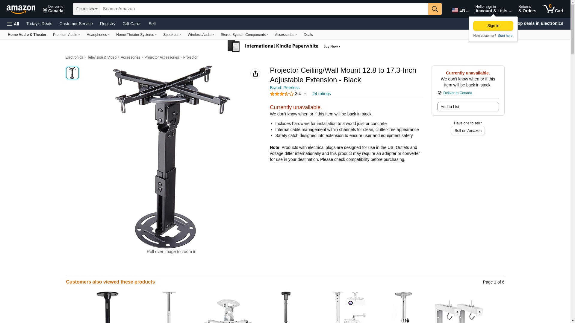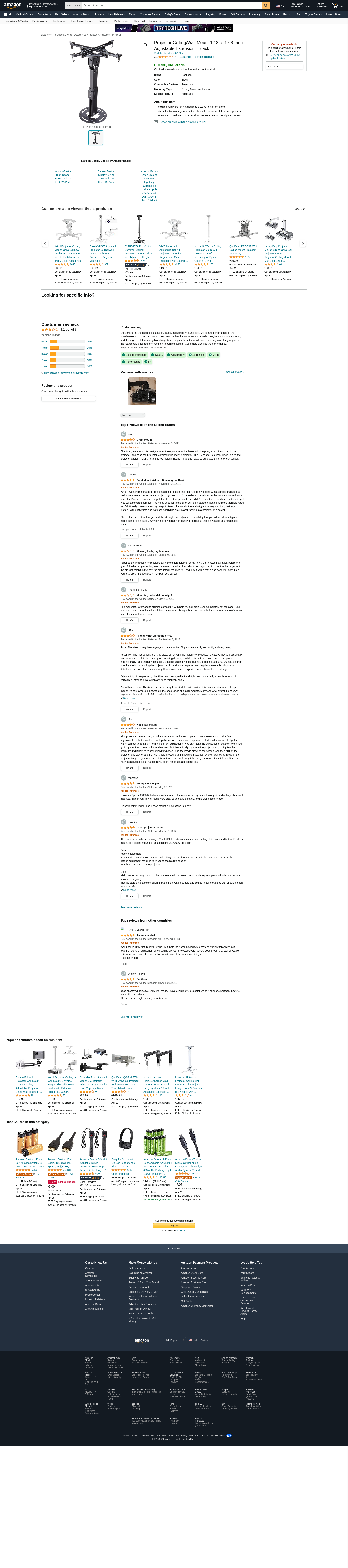 Projector Ceiling/Wall Mount 12.8 to 17.3-Inch Adjustable Extension - Black