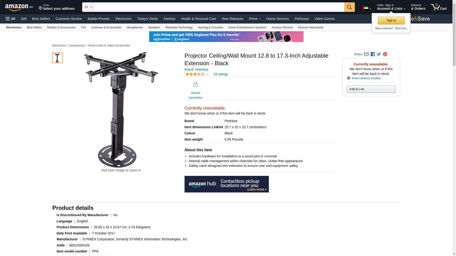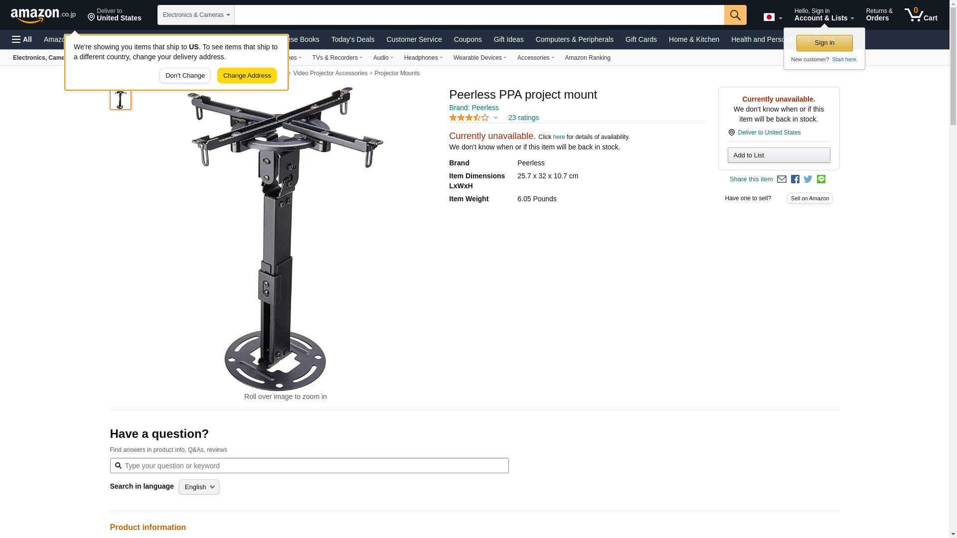 PEERLESS PPA BLK PROJECTOR MOUNT 50LBS