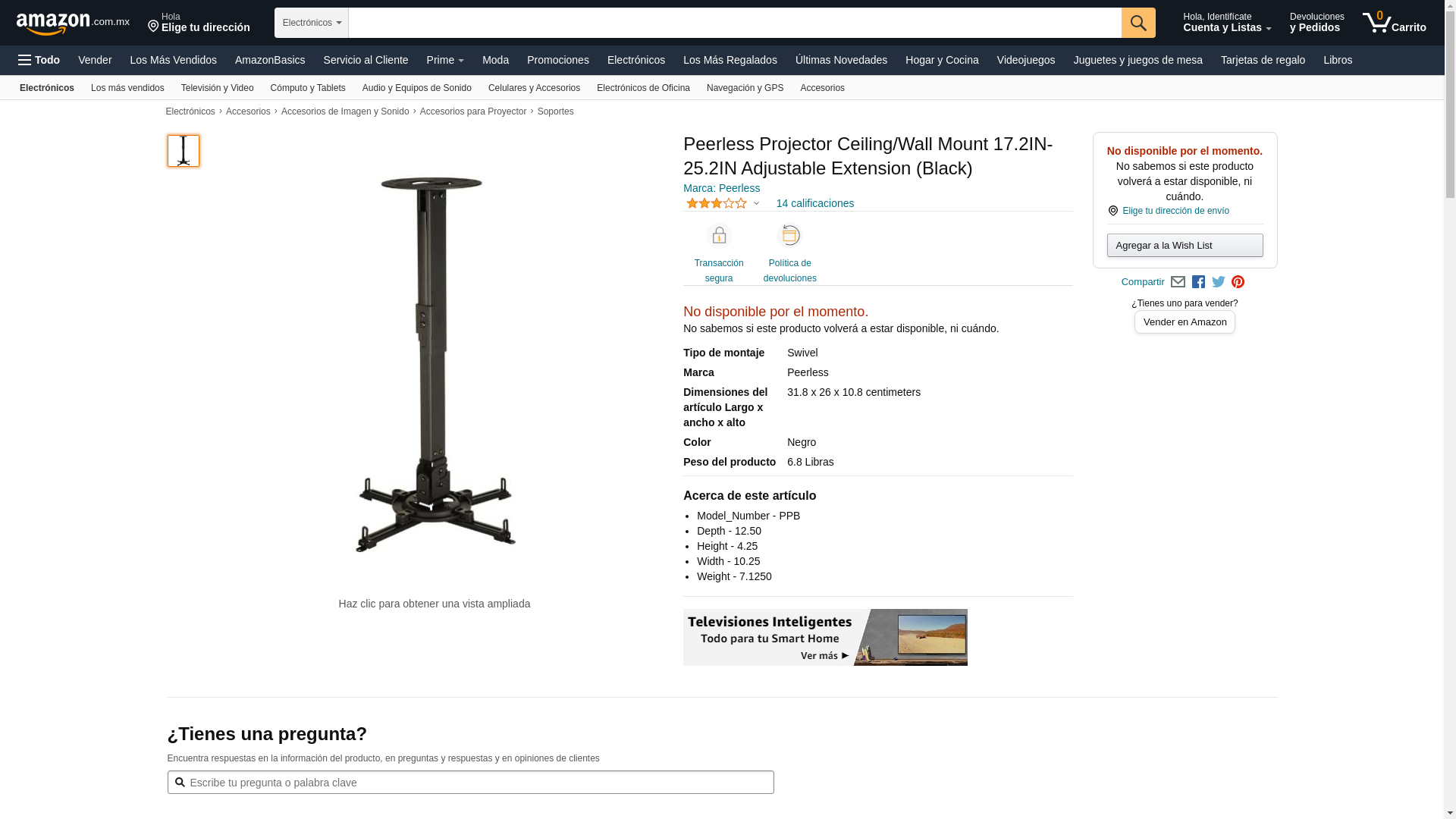 Universal Projector Mount, 16.2"-25.2" Adjustable Extension - Black