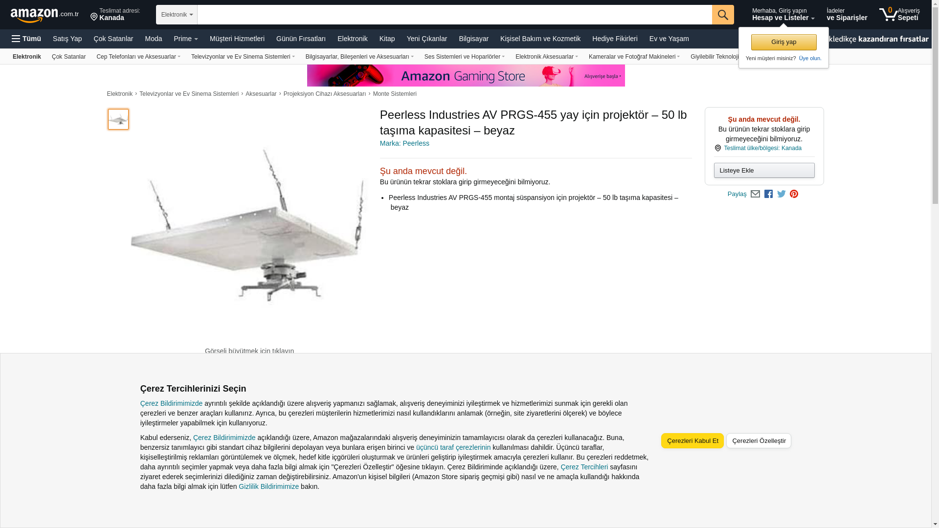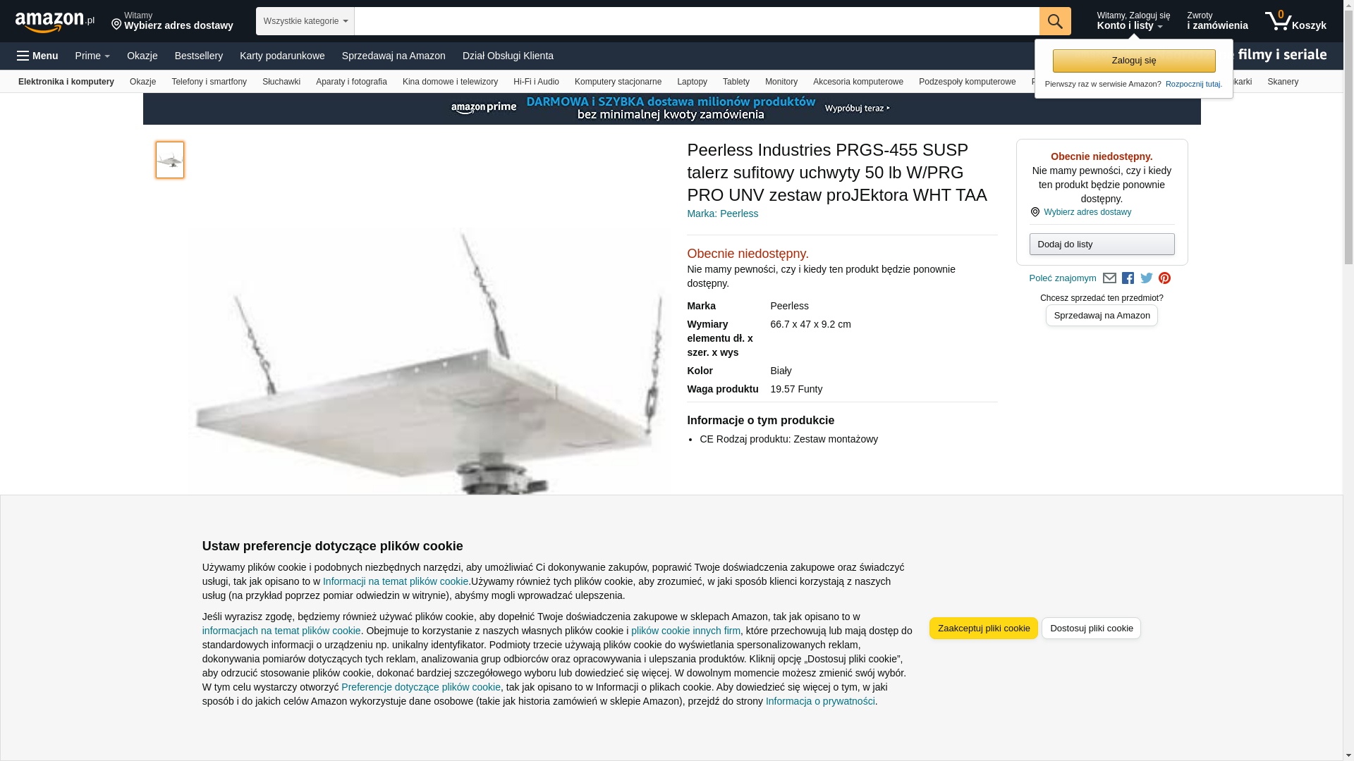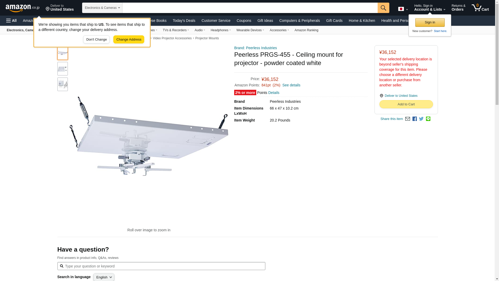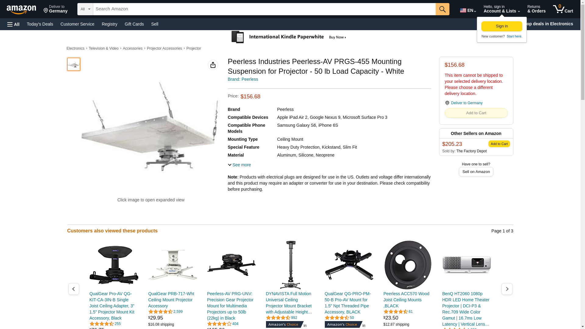 | Feature | Peerless Industries Peerless-AV PRGS-455 Mounting Suspension for Projector - 50 lb Load Capacity - White |