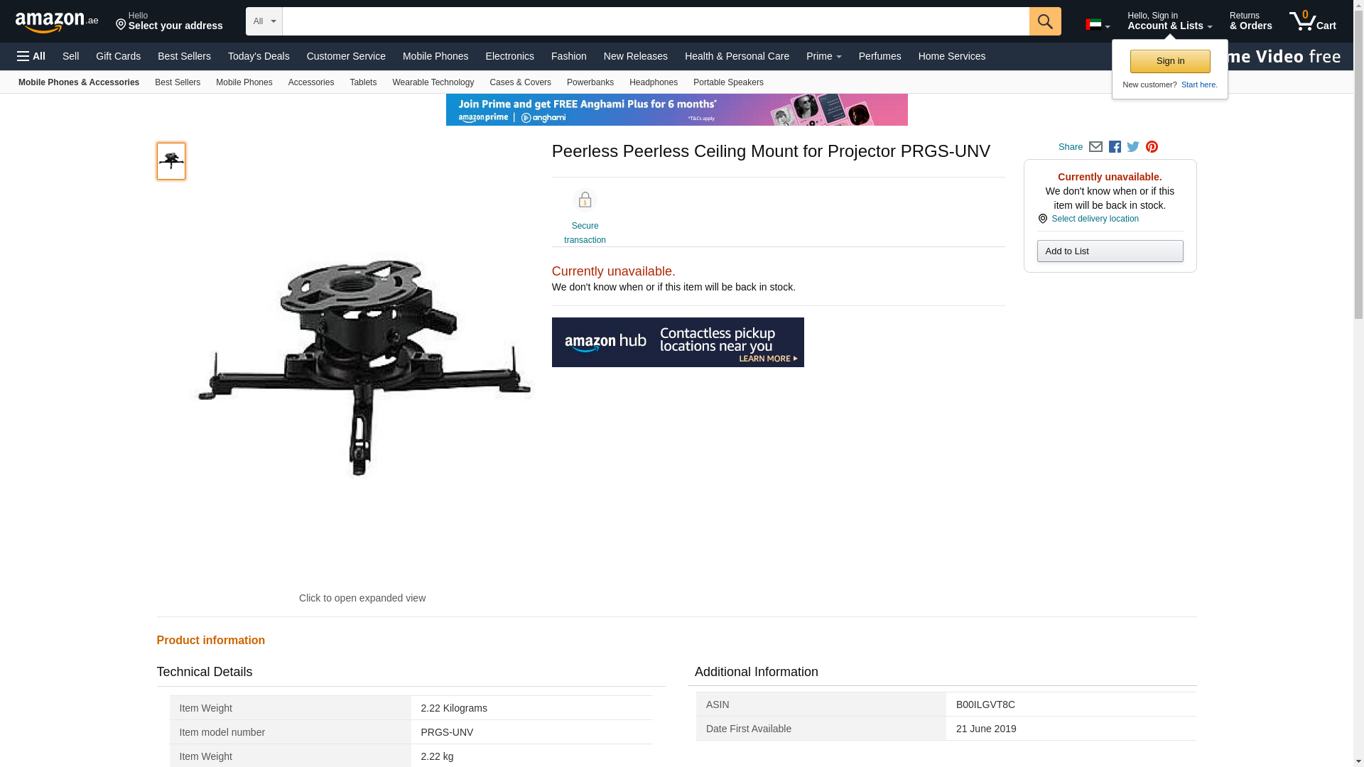 Peerless Ceiling Mount for Projector PRGS-UNV