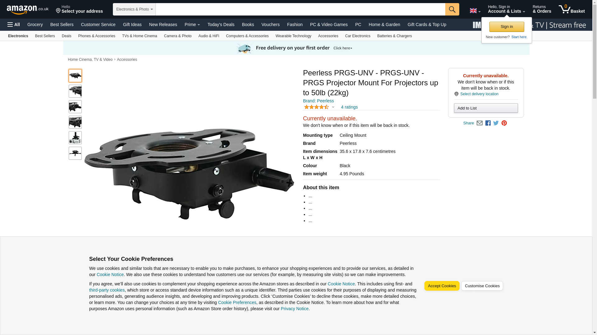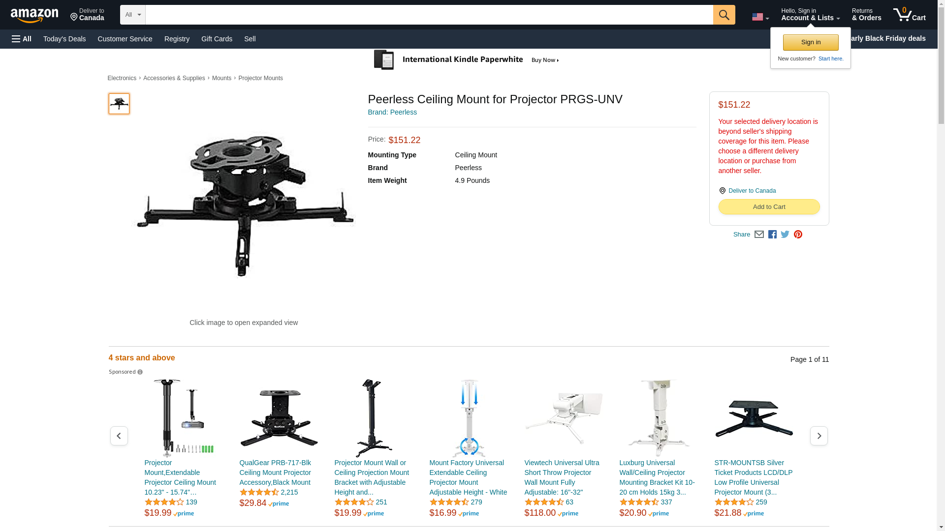 Prg pro universal projector kit blk manufacturer : peerless industries upc : 735029281795