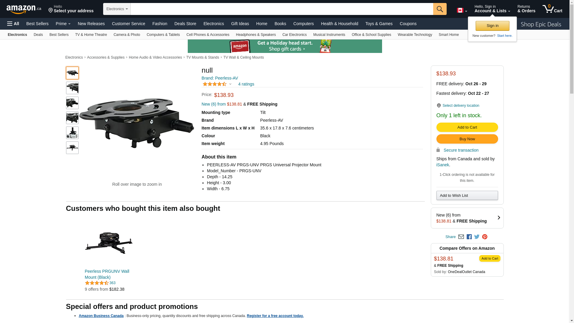 Peerless-AV PRGS-UNV PRGS Series Projector Mount
