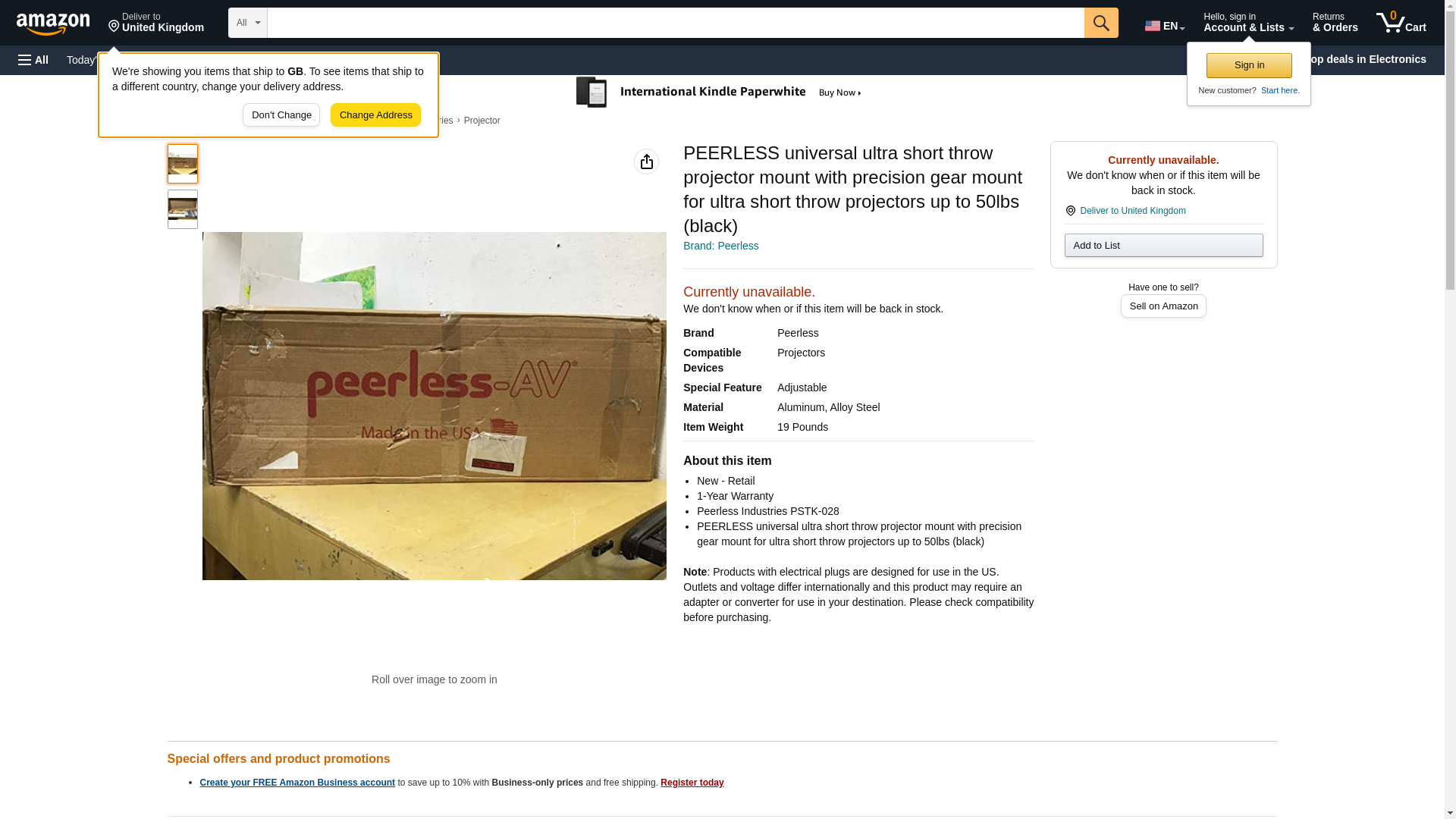 The Peerless PSTK-028 short throw projector mount provides installation flexibility for single stud or double stud applications. The universal telescoping arm is easily adjustable to accommodate various short throw projector distance requirements and provides up to 6" (152mm) of lateral adjustment for perfect projector placement. Complementary to the universal design of the short throw projector arm, this comprehensive package comes with Peerless-AV's Universal Precision Gear Projector Mount that makes image alignment as simple as a turn of a knob. To tie it all together, the internal cable management system provides a clean clutter-free solution. Package Content: wall armcarriage4mm allen wrench(4) M5x10mm serrated socket pin screw(4) #14-2.5 phillips head wood screwtube cap(4) concrete anchors(2) 1/4"-20 phillips screw(2) 1/4"-20 flat washerprojector mountwall plate(4) 5/16-18x1/2 carriage bolt(4) 5/16-18 serrated flanged lock nut Pitch 15º/-20º Roll 5 Swivel 360 50 lb. weight capacityBlack powder coat finish Height 13.79 Width 18.50 Depth 36.61 Weight 16.00 Color Black Operating System Batteries Included Batteries Required Number of Batteries Battery Type Language English Assembly Required