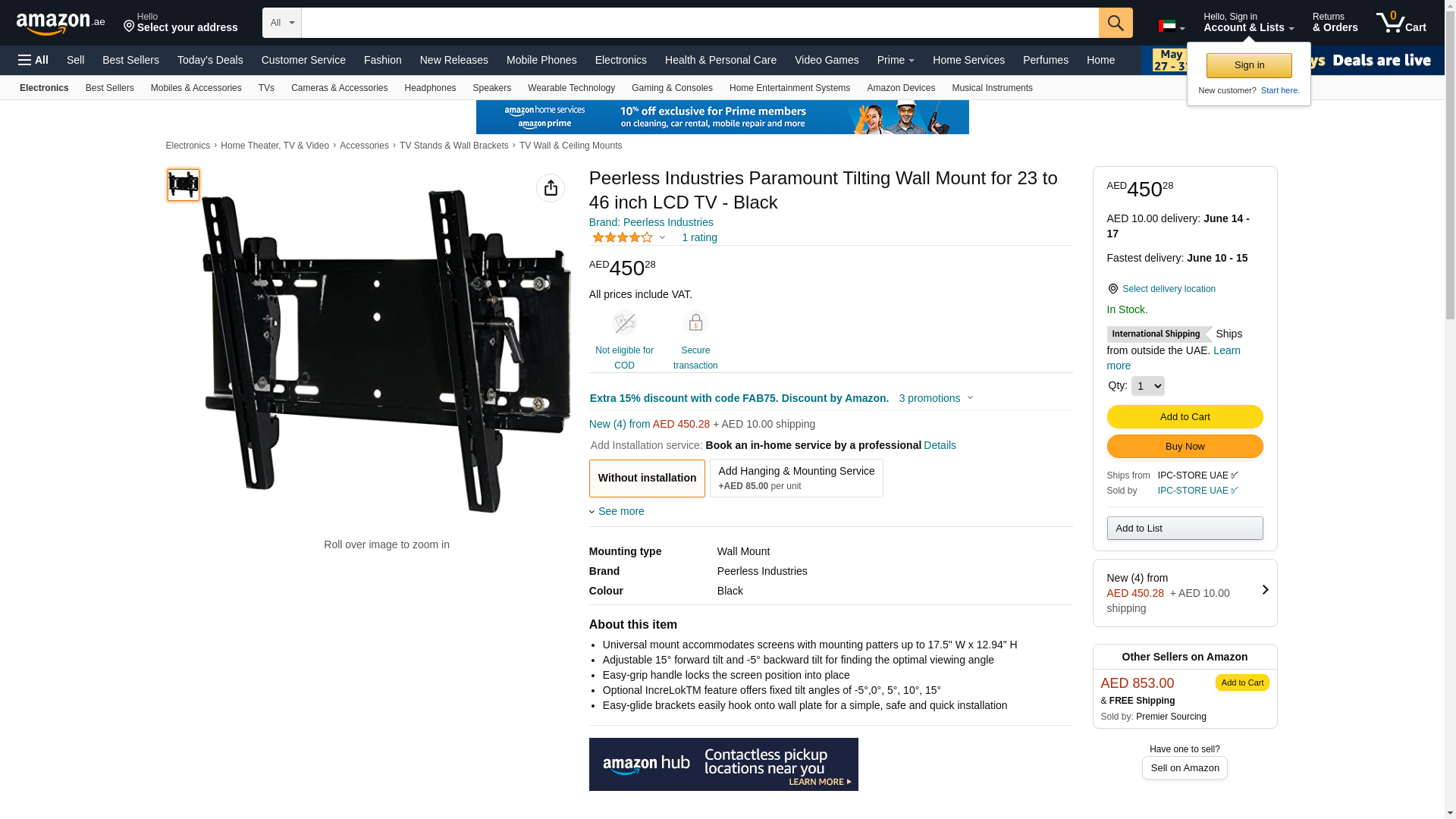 Take a look at the features for Peerless TV Wall Mount. Color:Black, Type:Tilt.