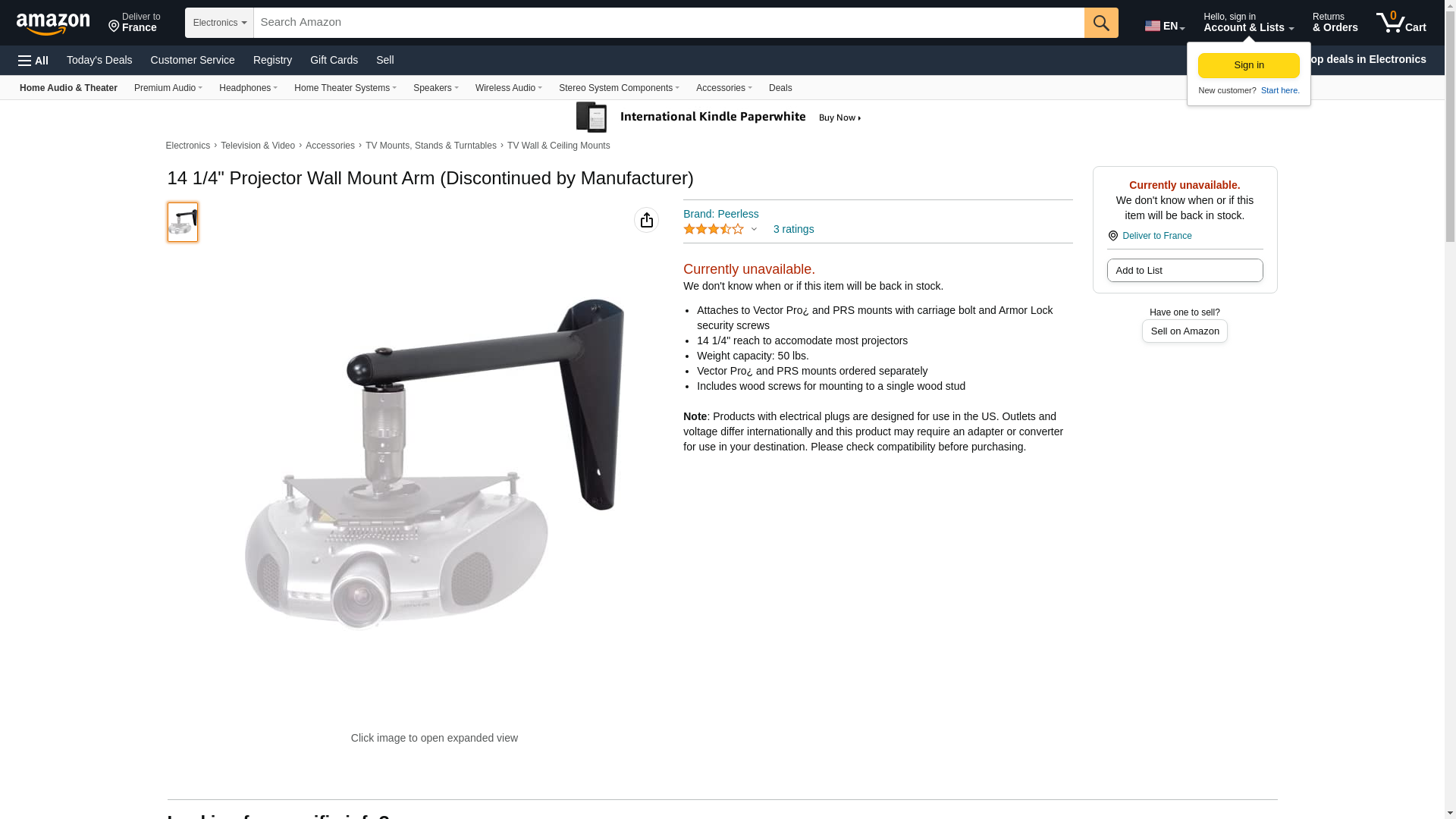 - Peerless Industries Peerless Pwa-14 Projector Mount Wall Arm (Black)