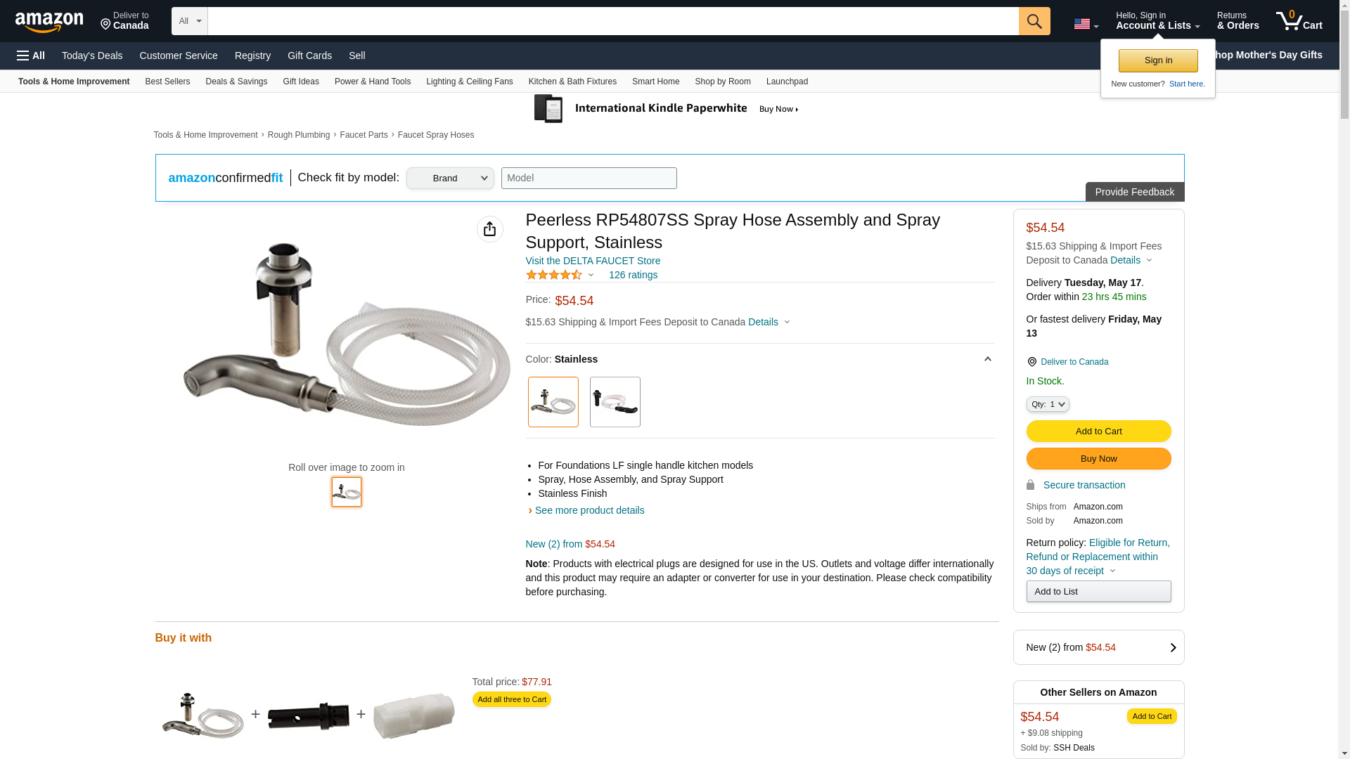 Sale price available now, discount on the Peerless RP54807SS Spray, Hose Assembly & Spray Support from the PlumbersStock pros - DIYers love our affordability.