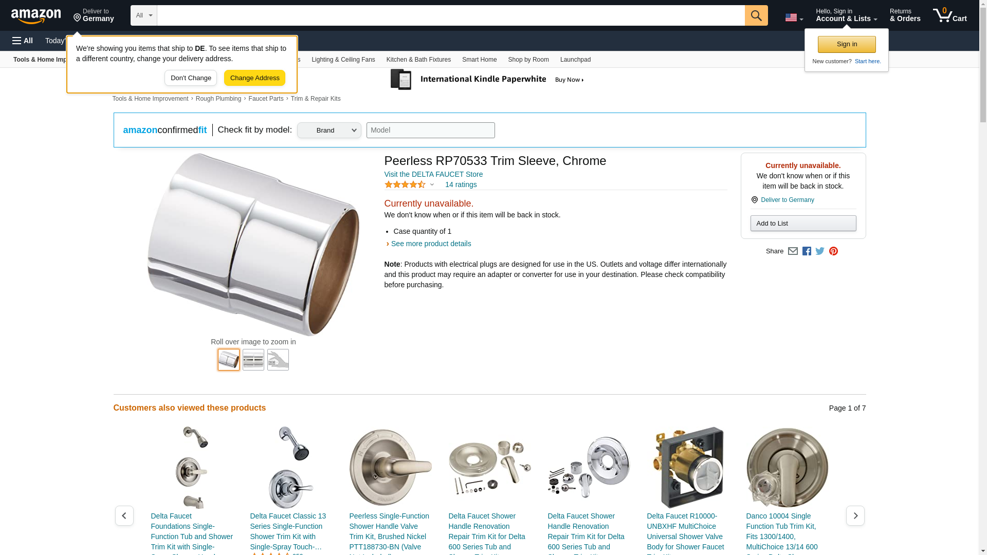 Peerless RP70533 Trim Sleeve, Chrome