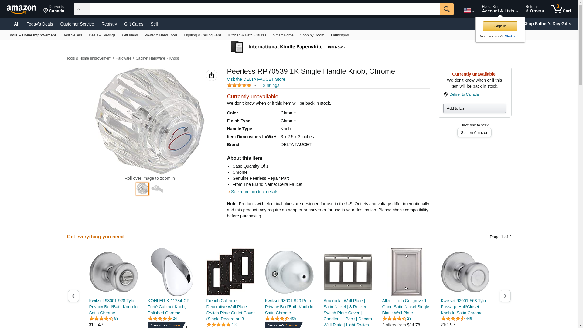 Peerless RP70539 1K Single Handle Knob, Chrome