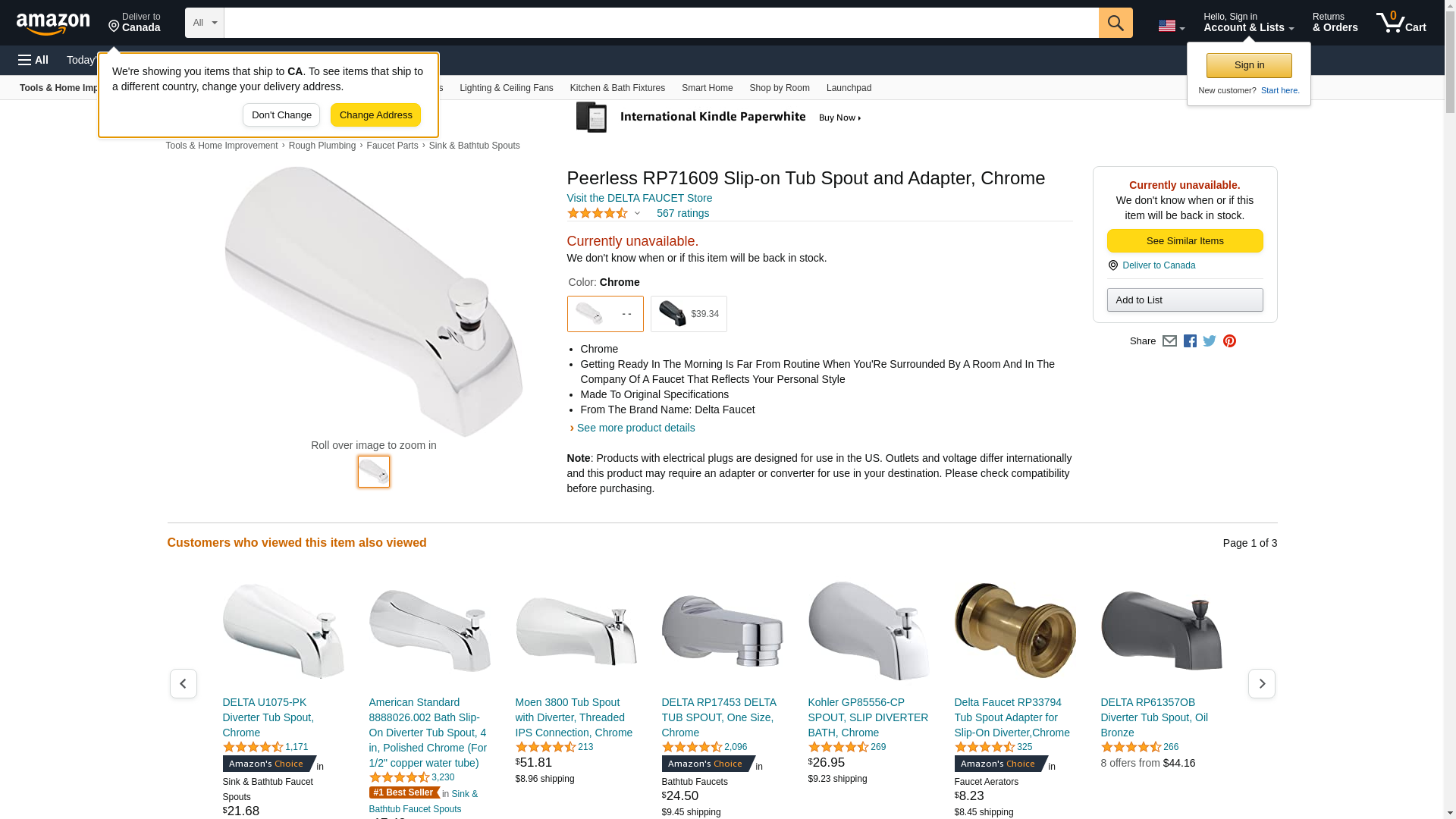 Peerless RP71609 Slip-on Tub Spout and Adapter, Chrome