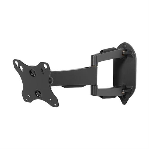 The SmartMount Adjustable Wall Arm makes it easy to view the display from any angle. This two-link arm extends up to 16" from the wall and provides easy one-touch tilt and 180 degrees of swivel for limitless viewing positions. Its anodized aluminum finish complements offices, conference rooms or any room in the home while its internal cord management system neatly hides all cables and cords for a clean, clutter-free installation. For easy installation, this mount comes completely pre-assembled with all necessary mounting and screen attachment hardware. Features: Fits 10" to 22" LCD screens Pre-assembled for fast and easy installation Comes with VESA 75/100 screen adapter plate Three tensionable pivot points for virtually limitless adjustments 35 of tilt and 7 of roll for flexible viewing positions Offers up to 180 of swivel Anodized aluminum finish in black or silver Built-in internal cord management channels keep wires out of the way Includes hardware for installation to a single wood stud or concrete Non-VESA adapter plates available (sold separately). Color: Black