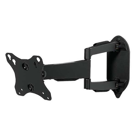 Flat Panel Articulating Mount, Wall, Overall Depth 2 1/8 In, Overall Height 5 1/2 In, Overall Width 10 1/2 In, Load Capacity 25 Lbs, Pitch +/- 35 Deg, Swivel Angle 180 Deg, Aluminum Construction, Color Black, For Use With LCD Screens 10 To 22 Inches, Meets UL, VESA Standards, Includes Theft Resistant Security Fasteners, Wood Stud and Concrete Hardware, Screen Adapter Plate