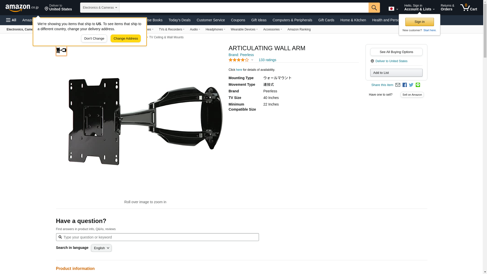 Smartmount articulating arm -22-37in. Blk manufacturer : peerless industries upc : 735029237327