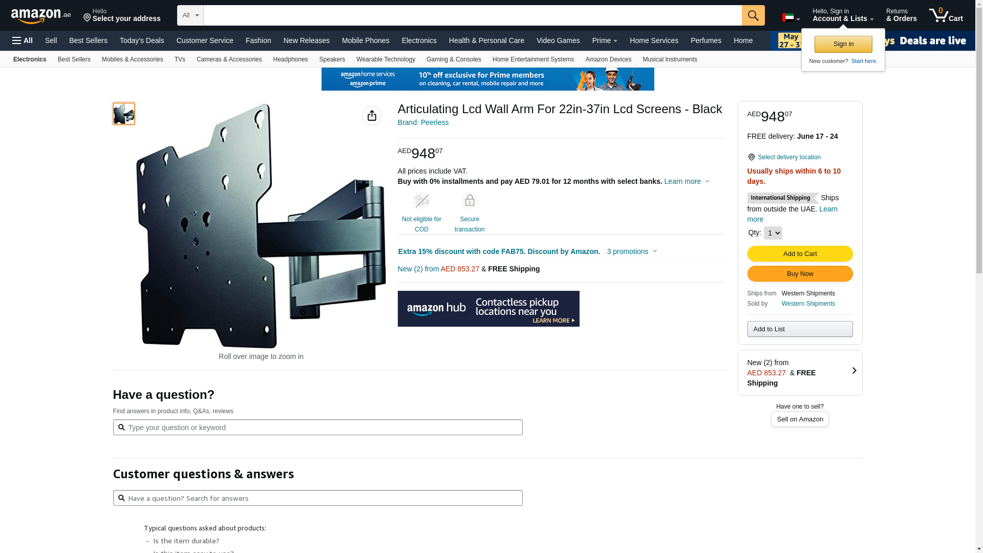 | Feature | 22-37" Articulating Wall Mounts For LCD Screens (Black) |