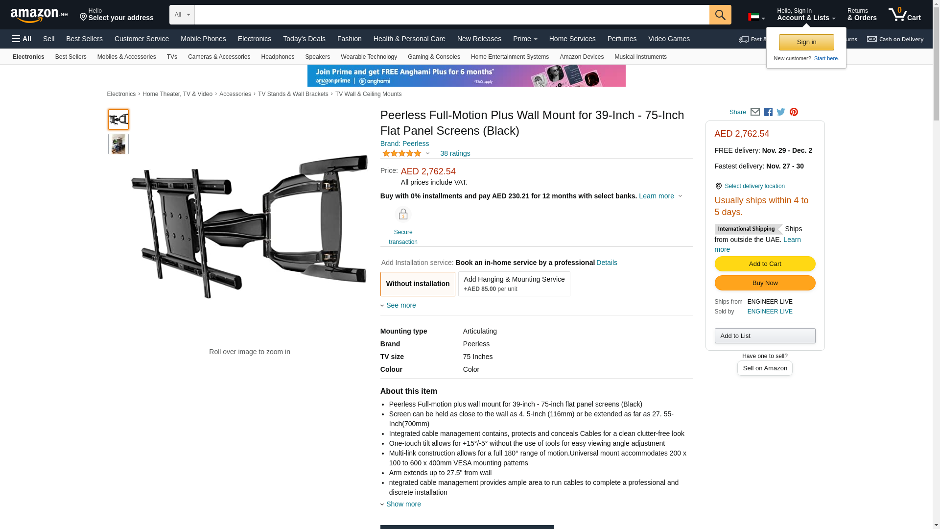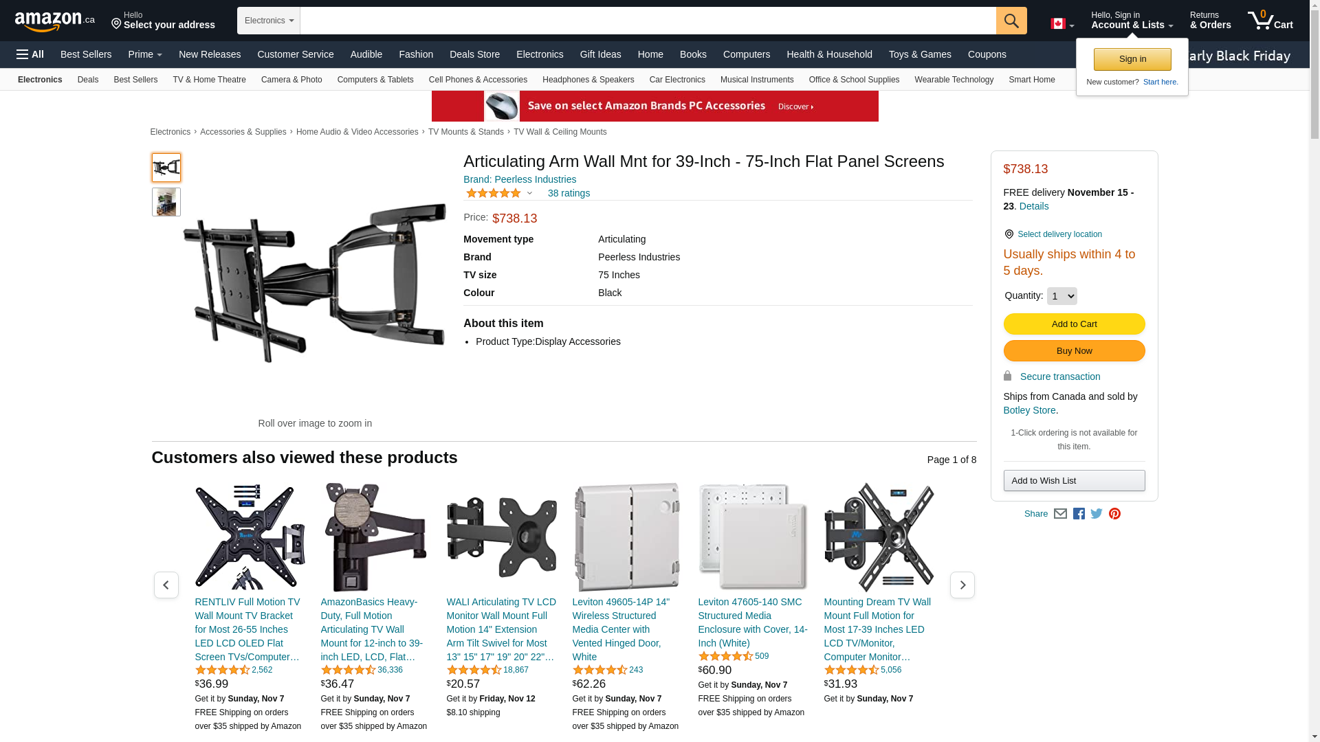 - Peerless Full-motion plus wall mount for 39-inch - 75-inch flat panel screens (Black)