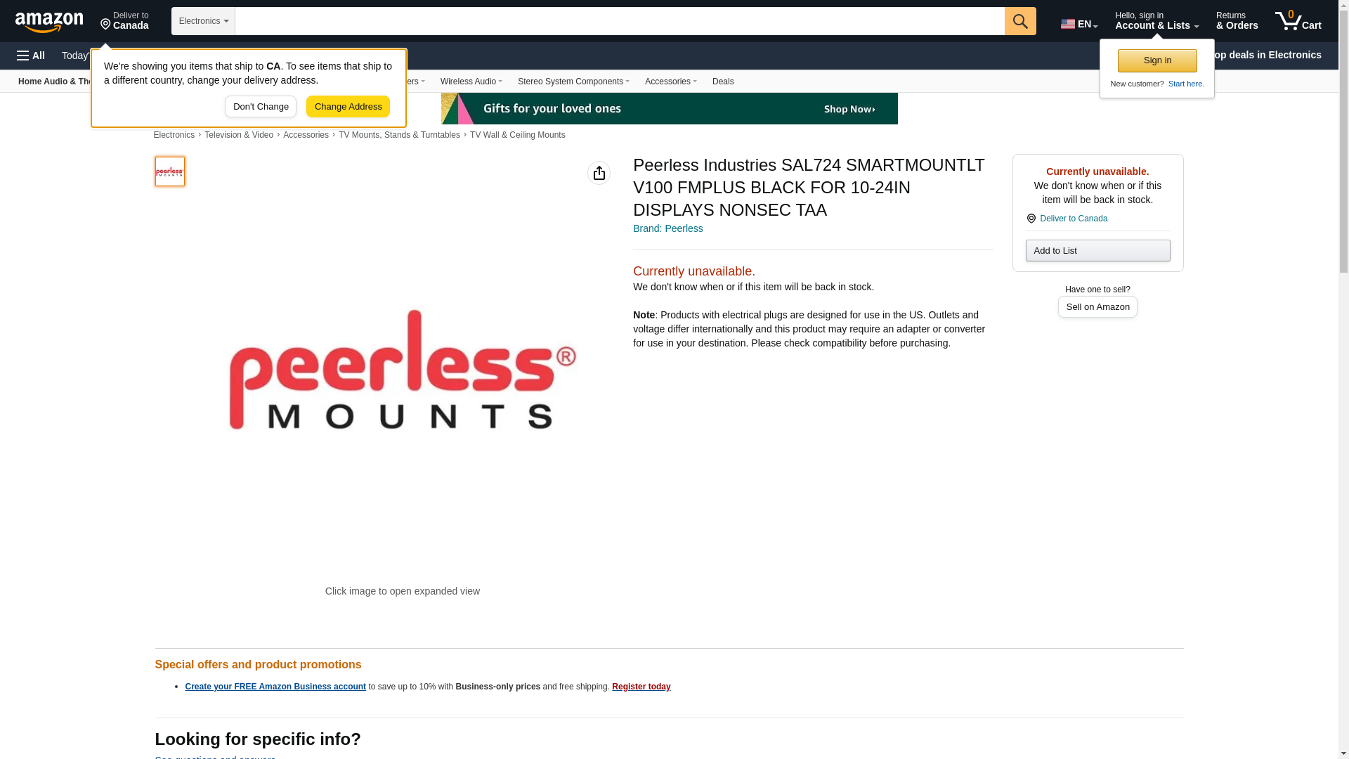 Peerless Industries SAL724 SMARTMOUNTLT V100 FMPLUS BLACK FOR 10-24IN DISPLAYS NONSEC TAA
