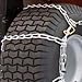 Chains are zinc plated for durability. Sold per pair of chains. For use with tire sizes: 20x10.50x12, 21x10.50x12, 21x11x8, 22x10x10, 22x10x12, 23x9.50x12, 24x8.50x12, 24x8x14.