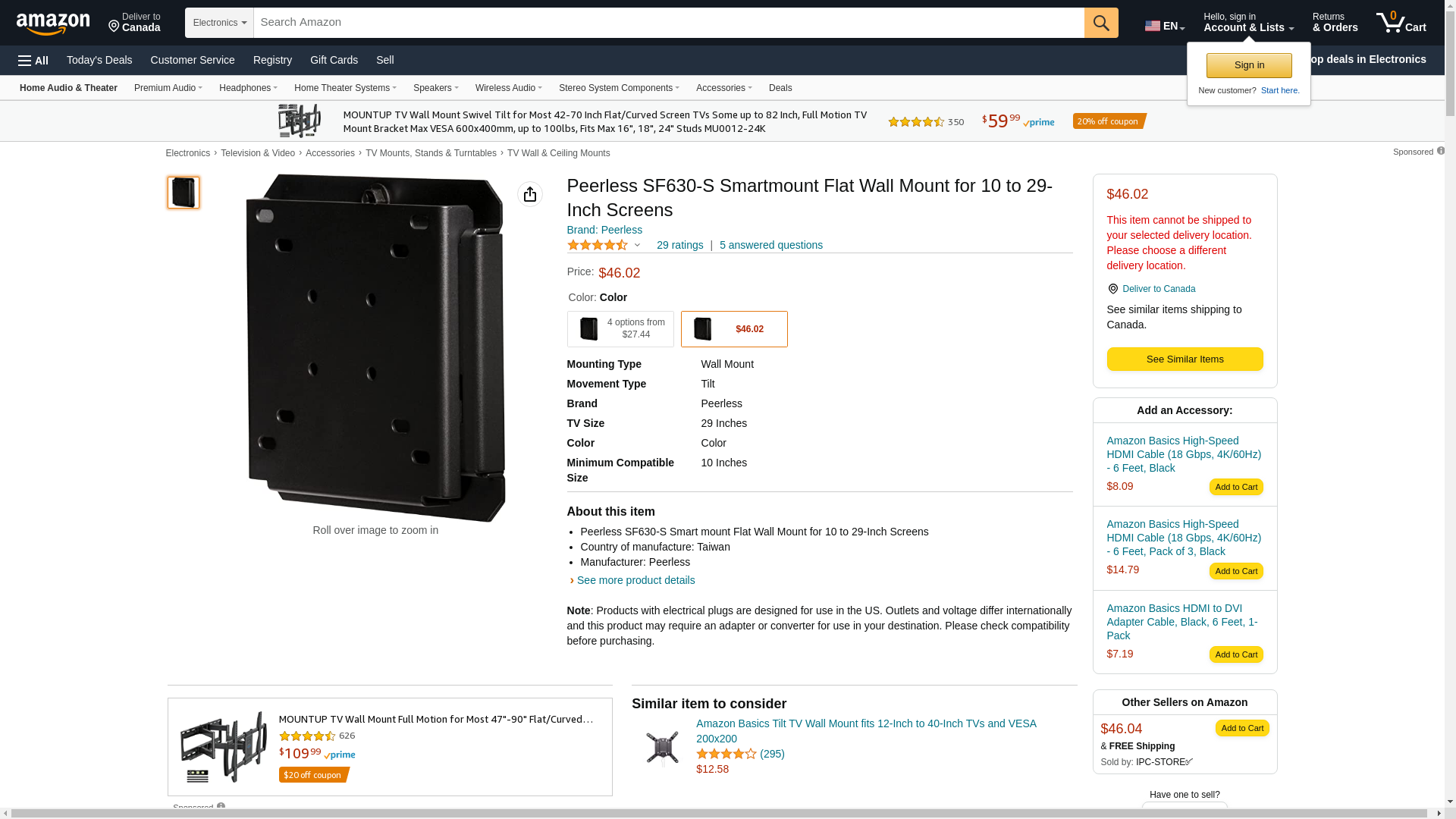 - Peerless SF630-S Smart mount Flat Wall Mount for 10 to 29-Inch Screens