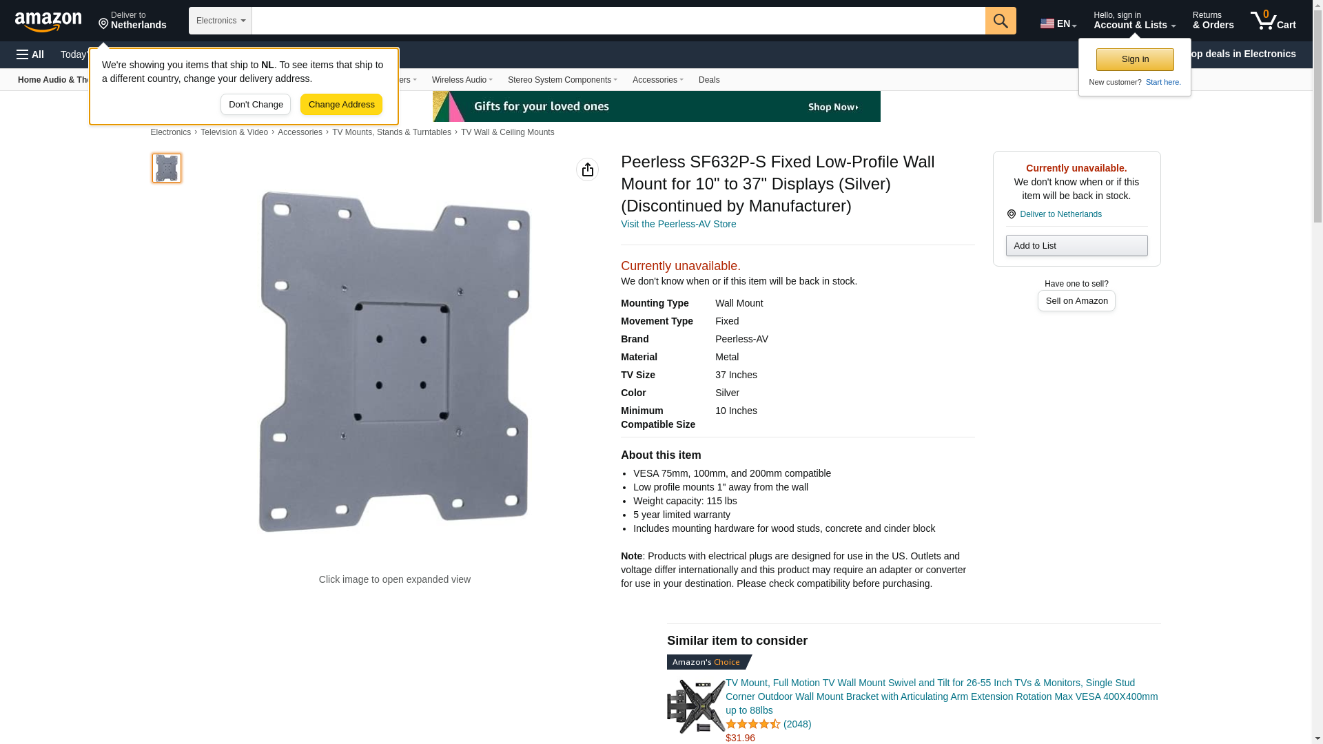 SF632P-S Color: Silver, Hardware: Phillips Head Features: -Available in silver or black scratch-resistant fused epoxy.-Compatible with VESA 75/100/200/400 mounting patterns.-Adapter plate hooks onto wall plate for quick and easy installation.-Mounts on a single stud.-This mount can be mounted directly into a metal stud by using the ACC 415, Metal Stud Fastener Kit.-UL tested.-Distance from wall: 1.1''.-Weight capacity: 115 lbs. Includes: -Includes hardware for installation to wood studs, concrete, and cinder block.-Security screws require special wrench for removal (included); phillips-head screws can be removed with any standard screwdriver.