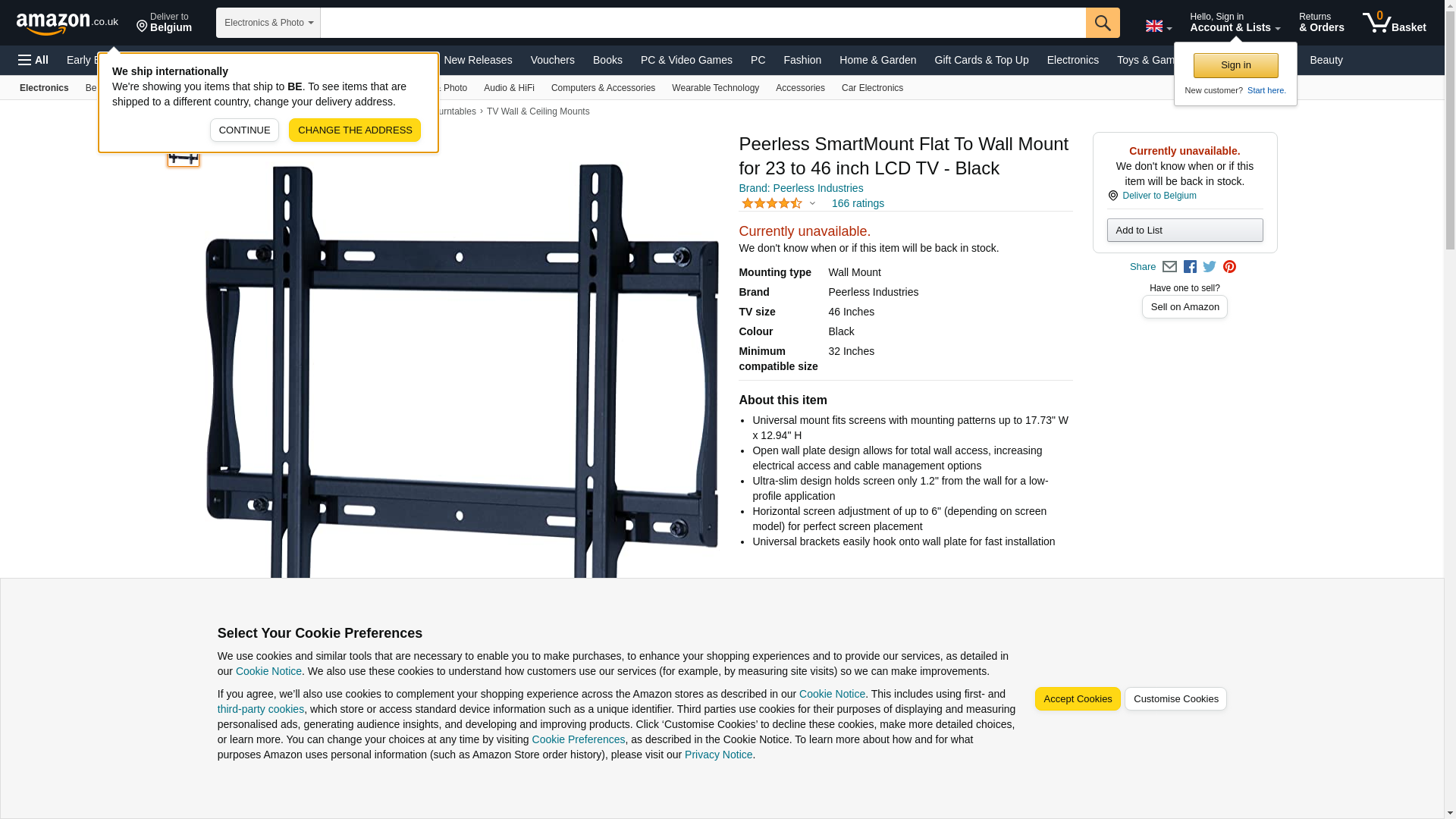 The SmartMount Universal Flat Wall Mount supports virtually any 23" to 46" LCD flat panel screen. The ultra-slim wall plate keeps the screen close to the wall for a very discreet installation that is perfect for boardrooms, digital signage, or home theaters. The mount includes simple to align universal brackets and a unique wall plate that can be mounted to one or two wood studs up to 16" apart, concrete, cinder block or two metal studs (accessory required). Includes a Sorted-For You baffle pack with all screen hardware and security fasteners. Features: Universal mount fits virtually any 23" to 46" LCD flat panel screen Ultra-slim design holds screen only 1.18" from the wall Easy-glide bracket design ensures screen is securely attached to wall plate Mounts to one or two wood studs, concrete, cinder block or metal studs (accessory required) Horizontal screen adjustment up to 6" Comes with Peerless Sorted-For-YouTM fastener pack with all necessary screen attachment hardware UL listed Comes in black or silver *Note that most 42 and larger plasma screens may not work with this mount. Use Mount Finder to confirm compatibility. Color : Black