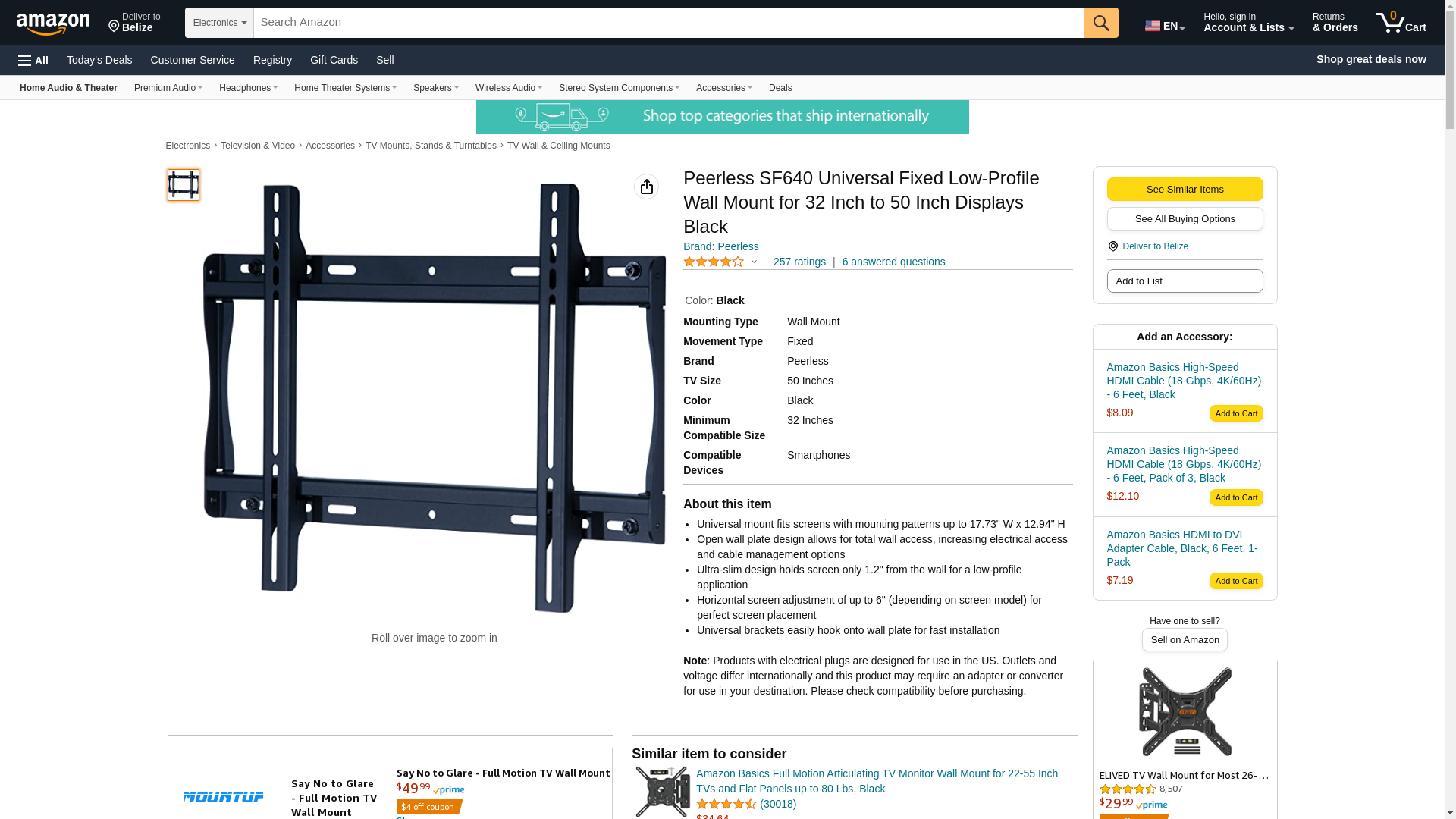 | Feature | Peerless Industries PEERLESS flat wall mount for medium 23"-46" LCD screen universal (black) SF640 |