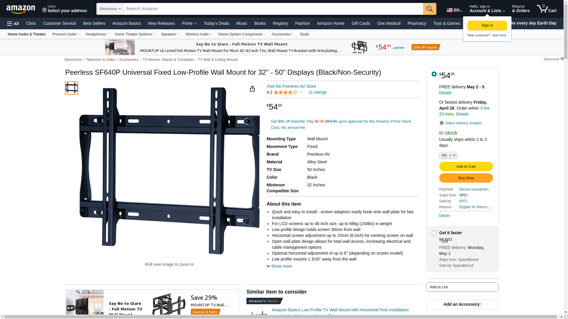 - Peerless Sf640p Univ Flat Wallmnt 23-46In