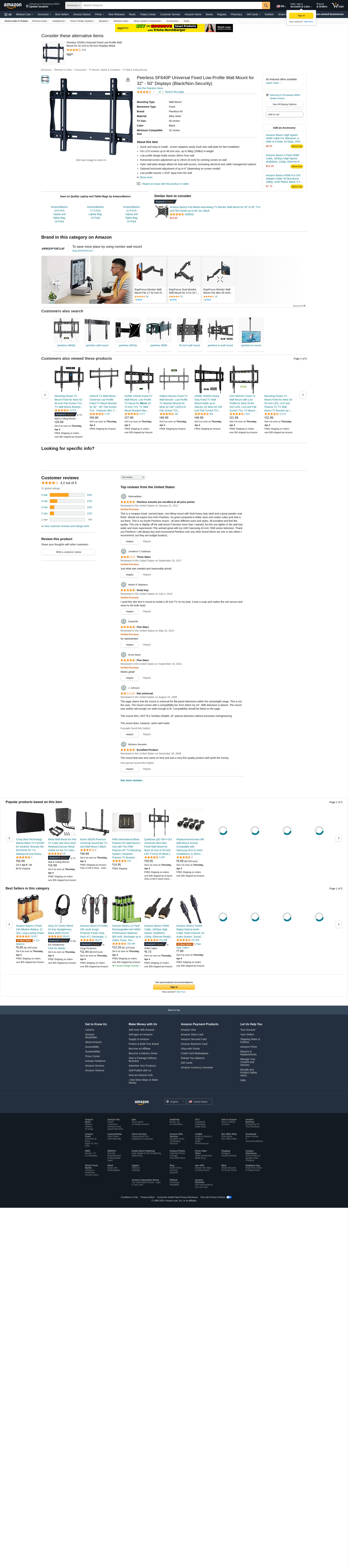 | Feature | Peerless Industries Peerless Smartmount Sf640p Universal 23 - 46 Flat Wall Mount (Black) |