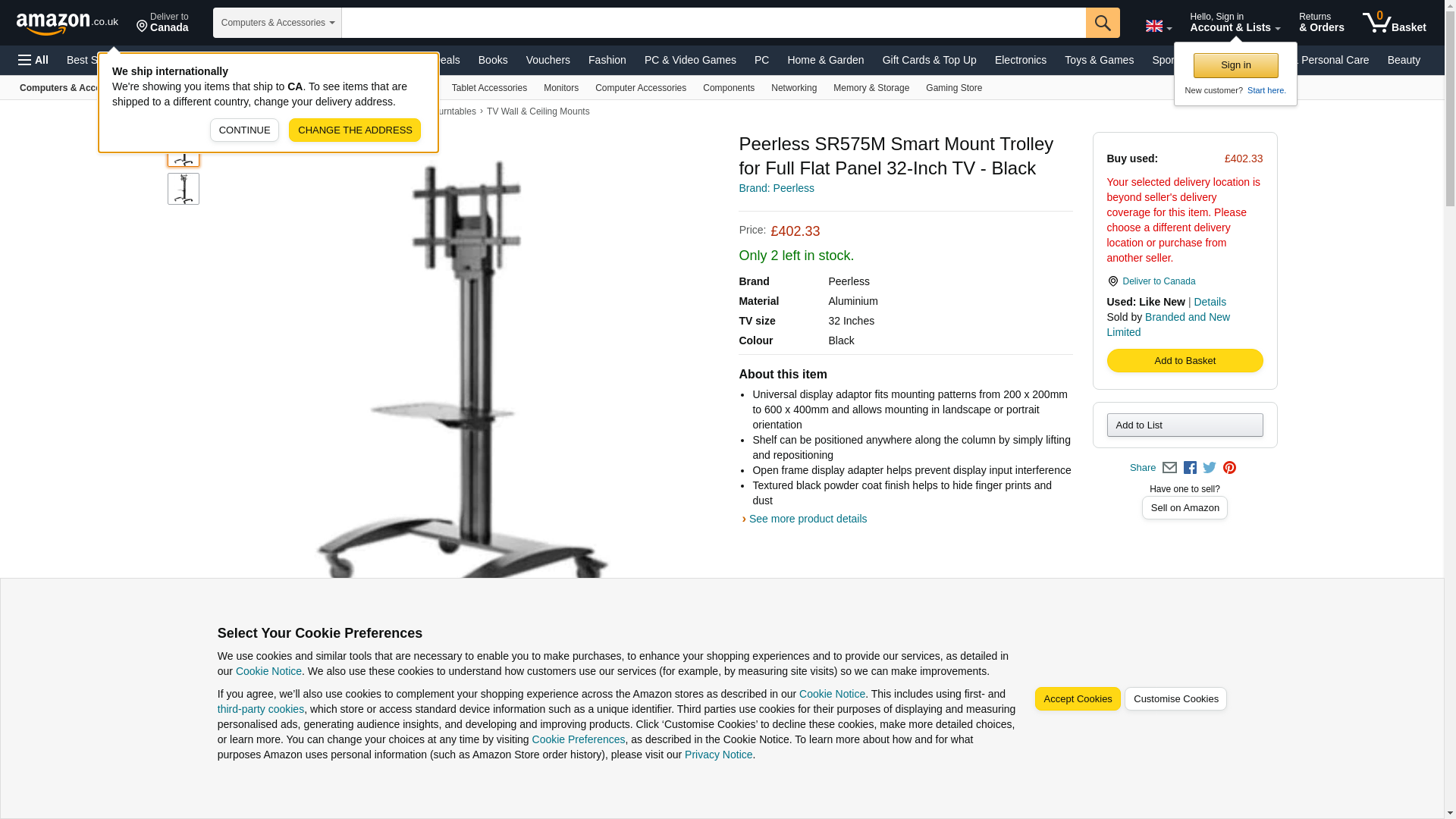 Peerless SR575M Smartmount Full Feature Universal Cart for 32"-75" TV