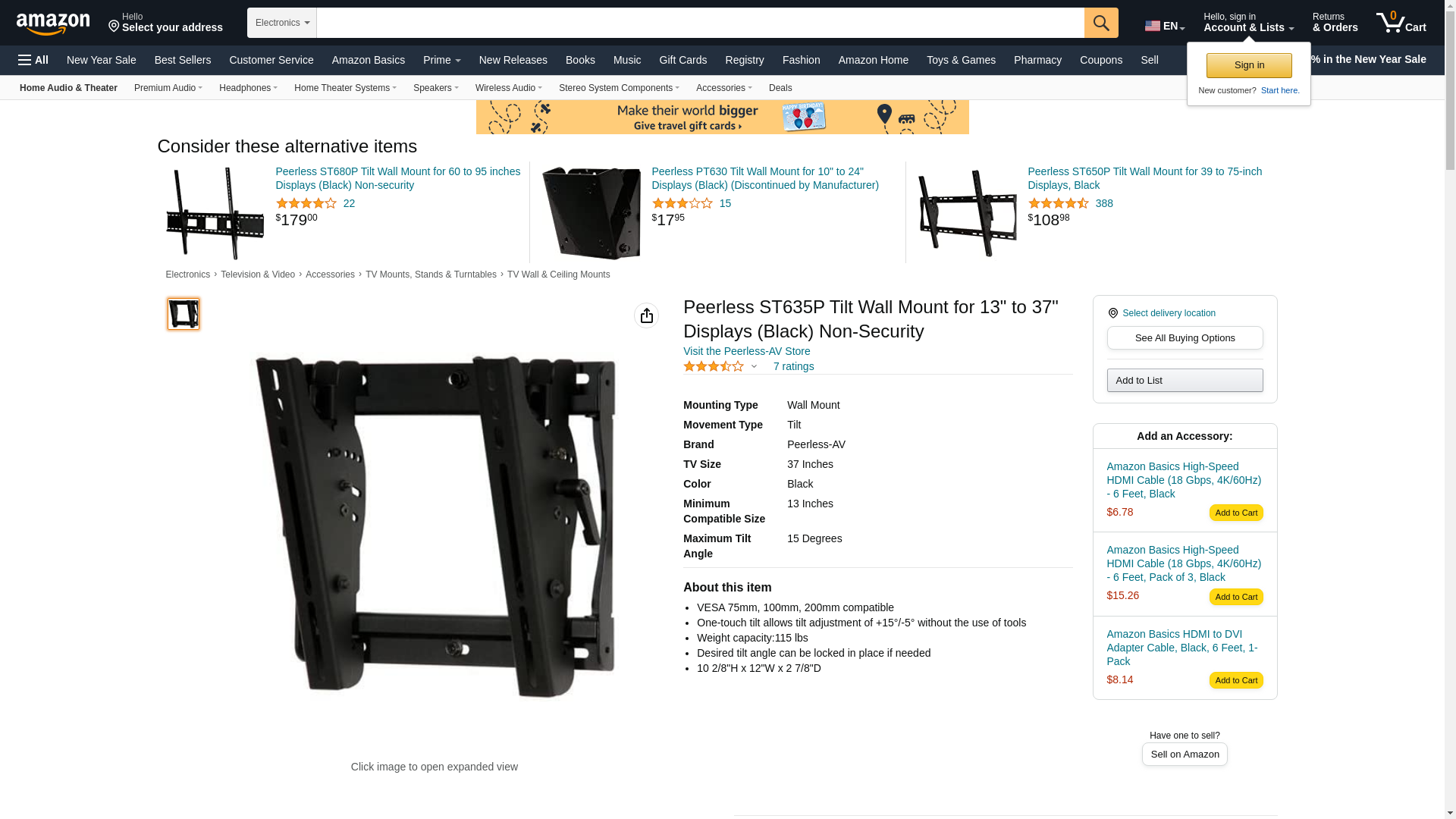 | Feature | Peerless Industries PEERLESS smartmount universal tilt wall mount for small to medium 13"-37" flat panel screen (black) ST635P |