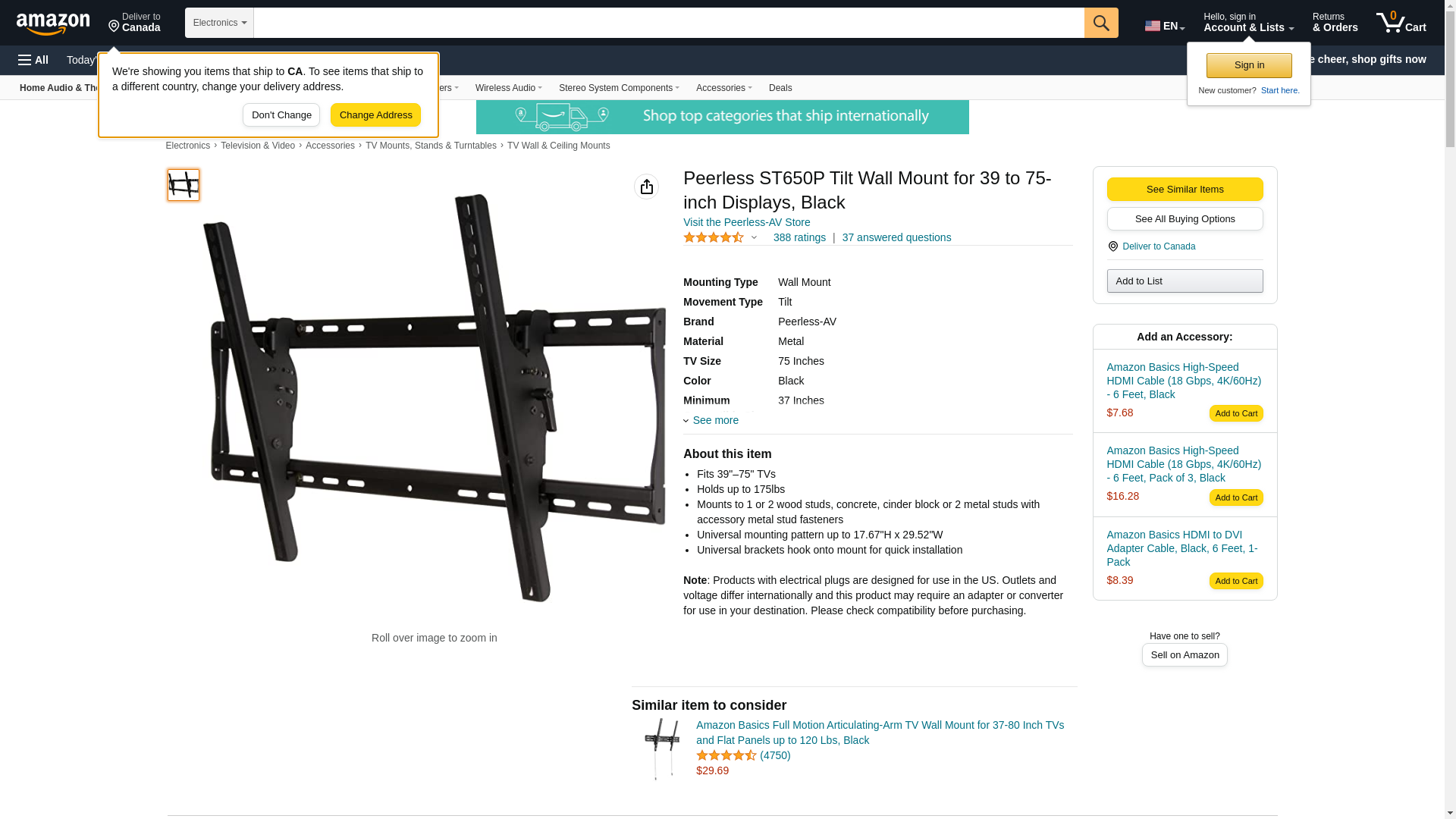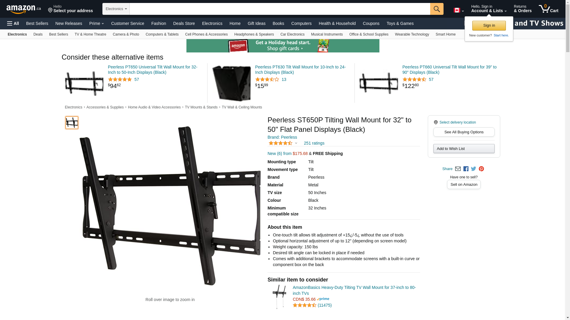 | Feature | manufacturer: Peerless Industries; part number: ST650P |