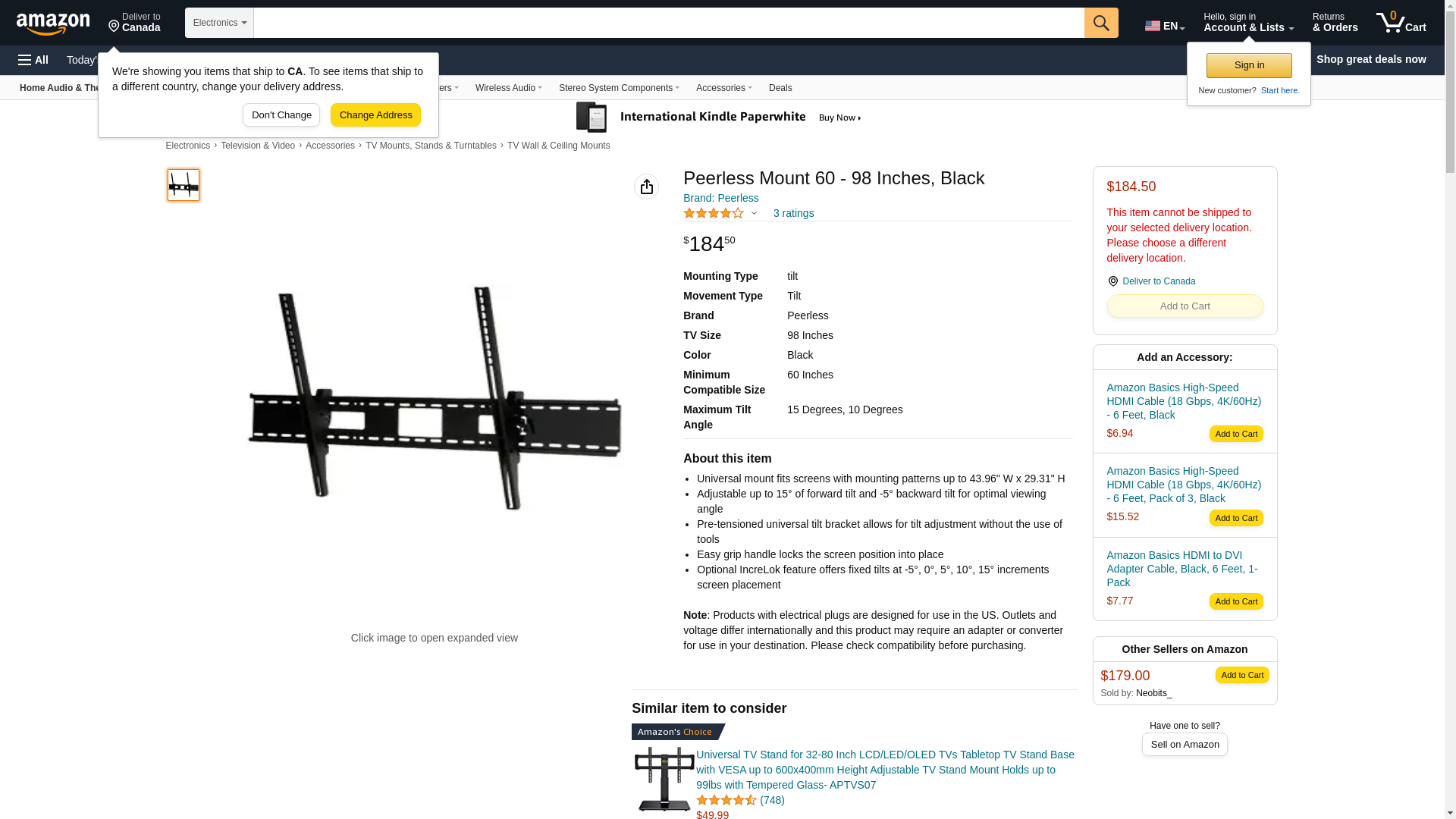 Peerless Mount 60 - 98 Inches, Black