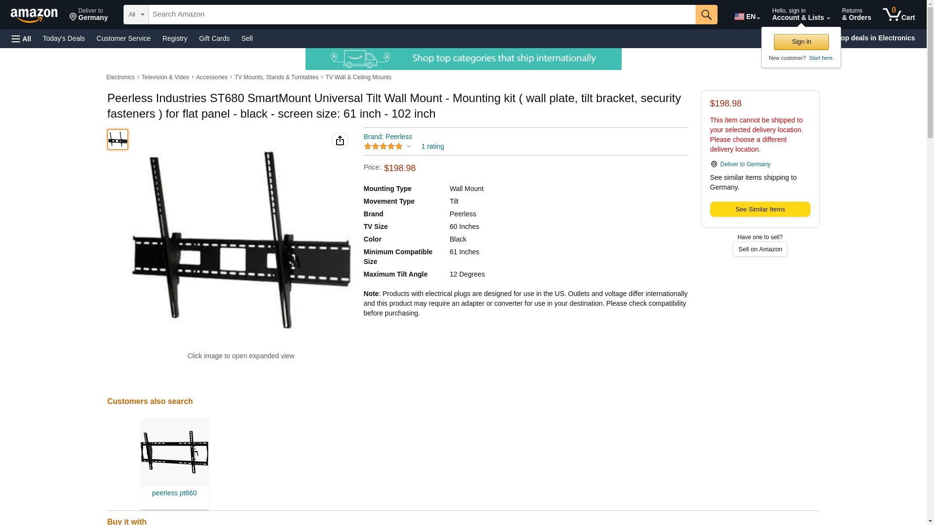 | Feature | Peerless ST680 Universal Xlarge Tilt Wall Mount for 61-102" LCD Flat ... |