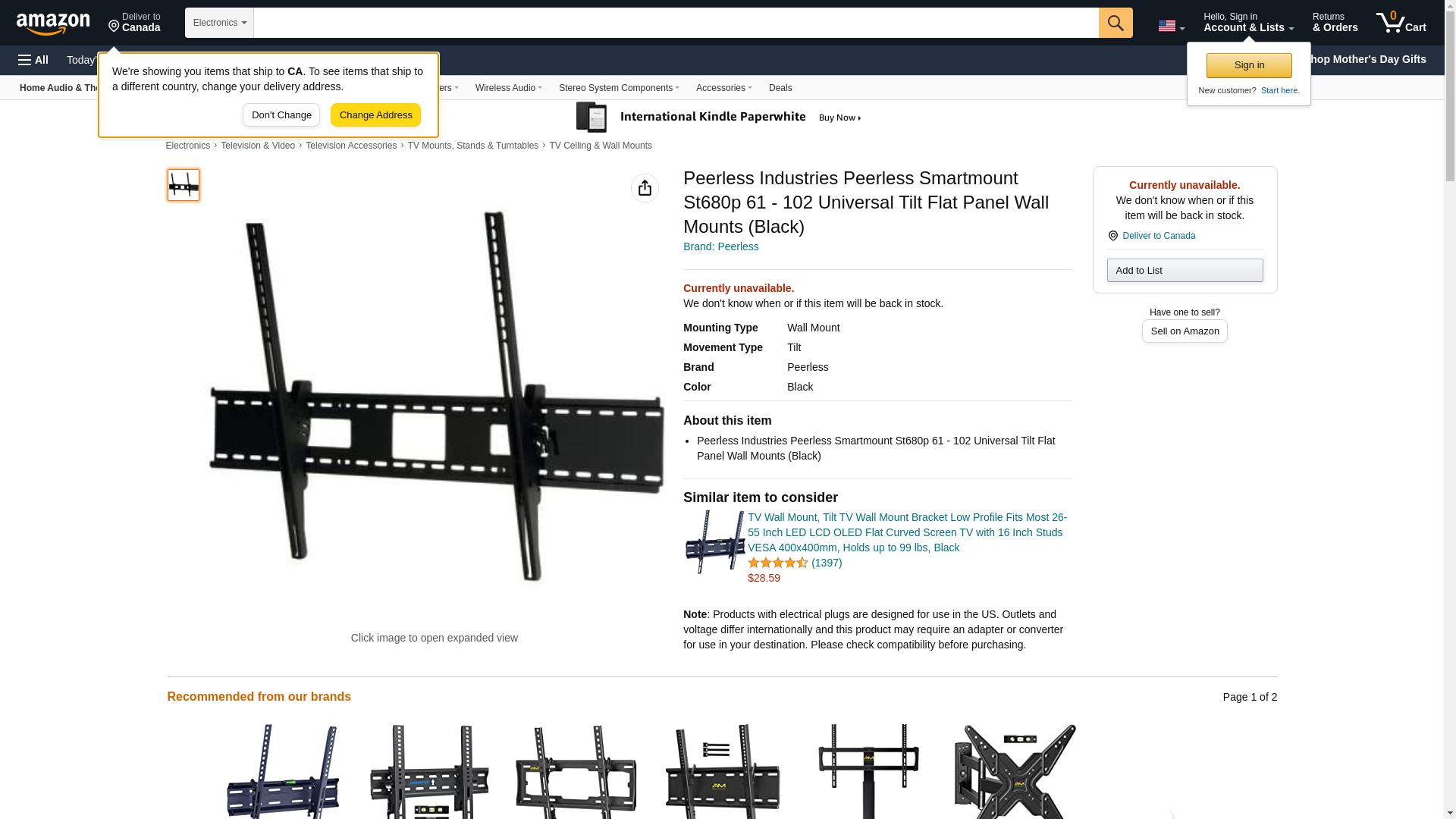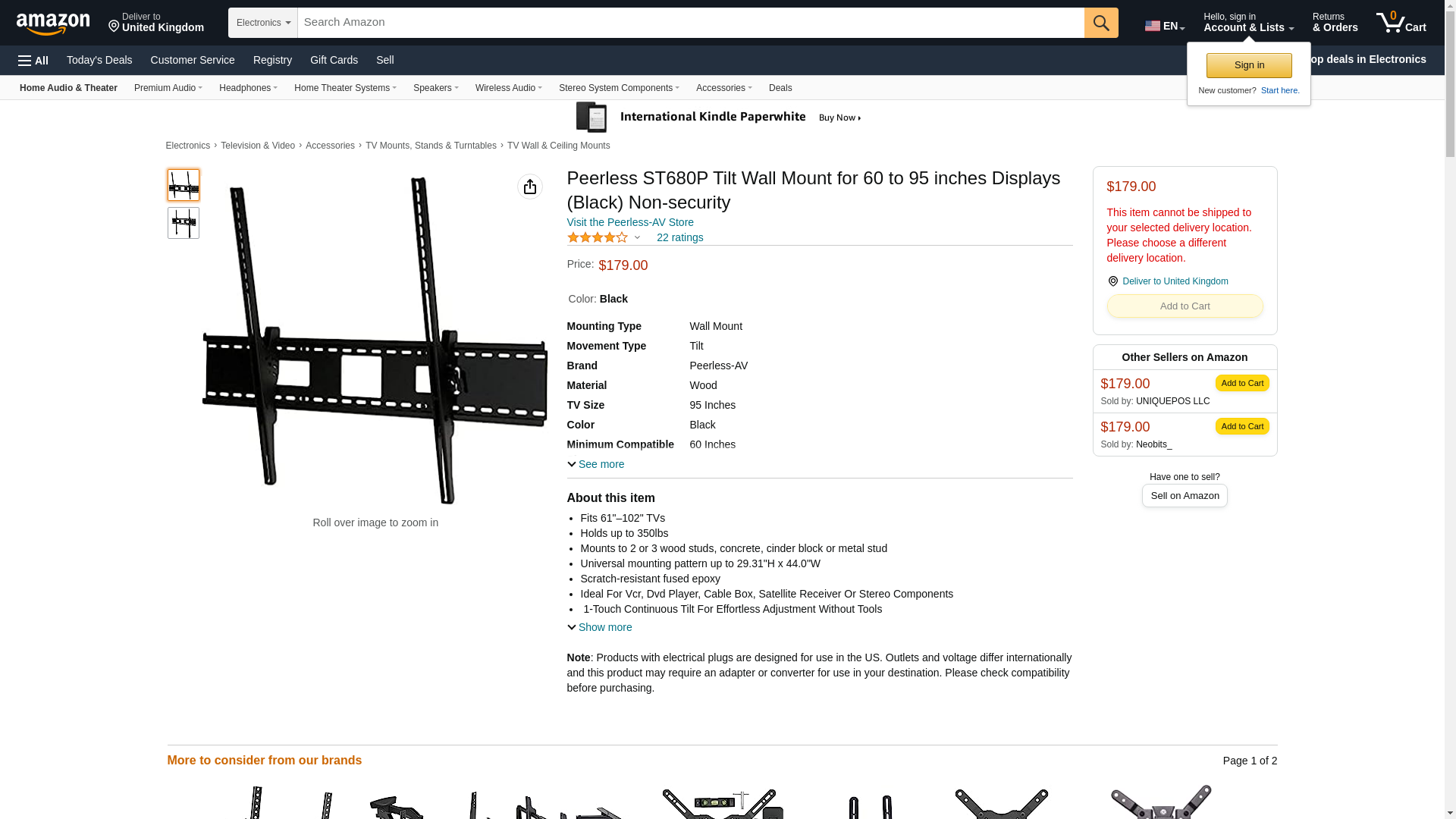 | Feature | Peerless Industries ST680P Universal Tilt Wall Mount for 61-102" Flat ... |