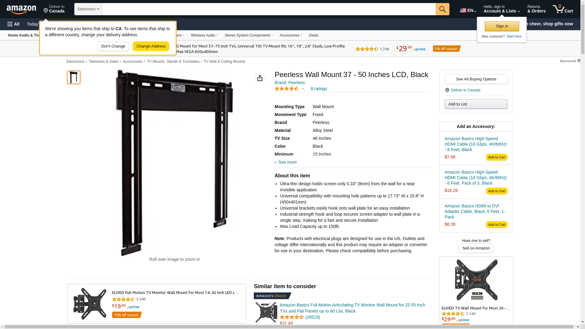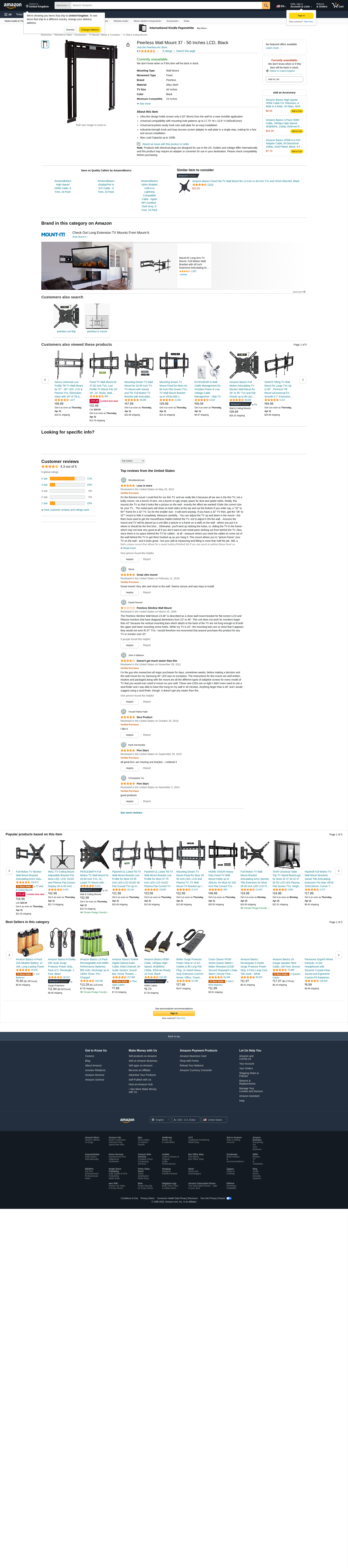 Peerless Wall Mount 37 - 50 Inches LCD, Black. Ultra-thin design holds screen only 0.33" (8mm) from the wall for a ne...