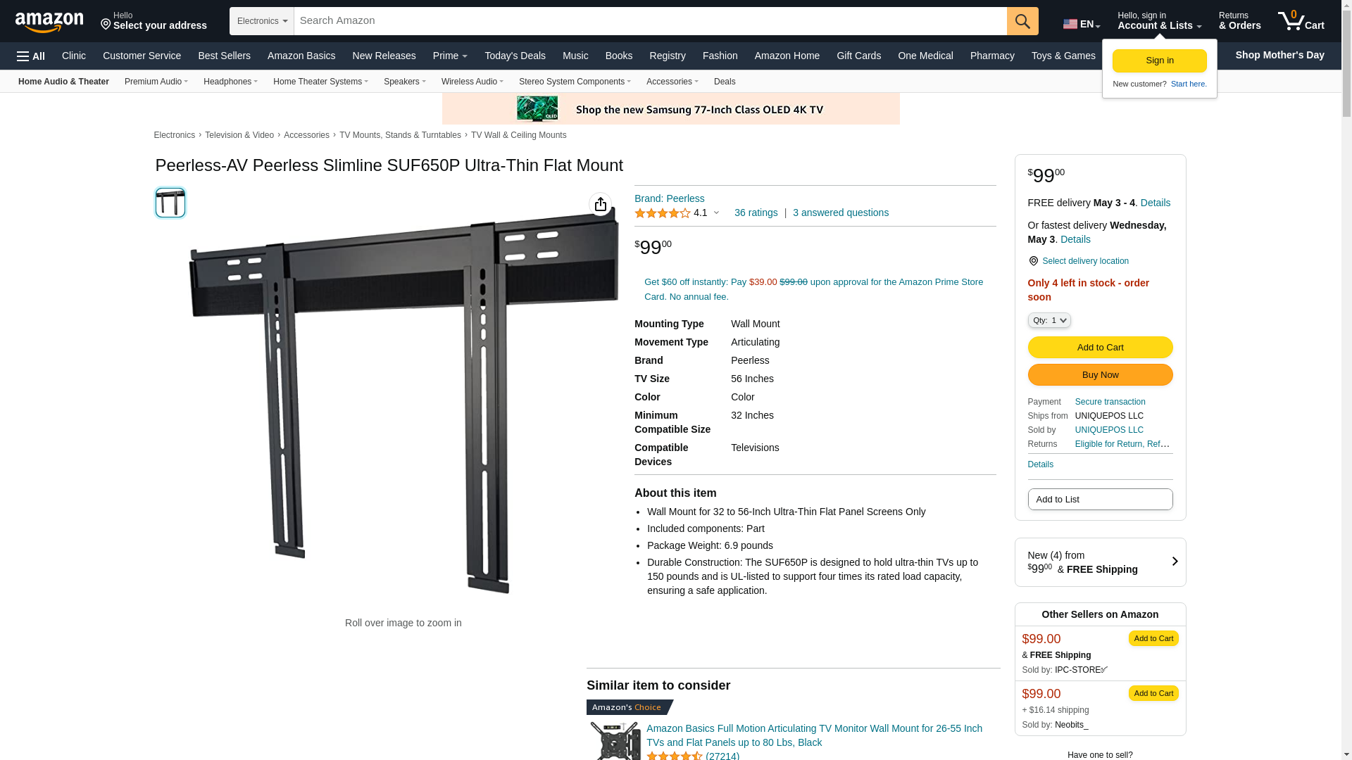 Peerless Suf650p Ultrathn Mount 32-50