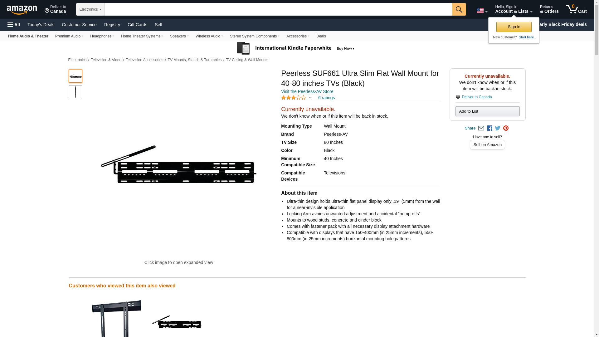 PEERLESS INDUSTRIES ULTRA THIN FLAT MOUNT, GBLK SUF661<br/>ULTRA THIN FLAT MOUNT, GBLK SUF661<br/><br/><br/> Manufacturer : PEERLESS INDUSTRIES<br/> UPC : 735029278382