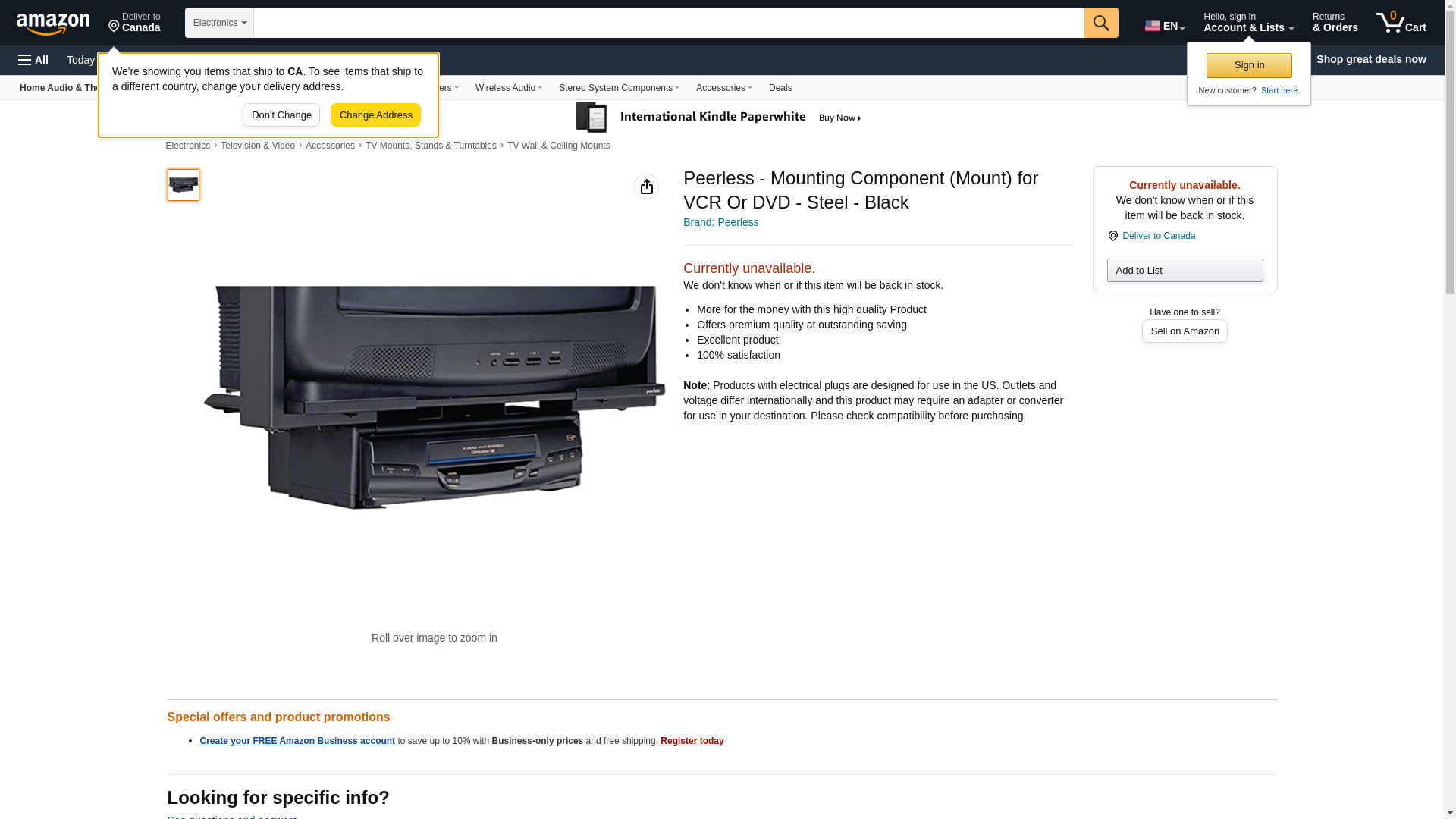 Peerless - Mounting Component (Mount) for VCR Or DVD - Steel - Black