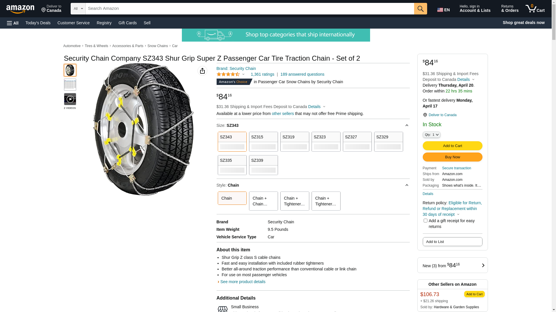 Security Chain Company SZ343 Shur Grip Super Z Passenger Car Tire Traction Chain - Set of 2
