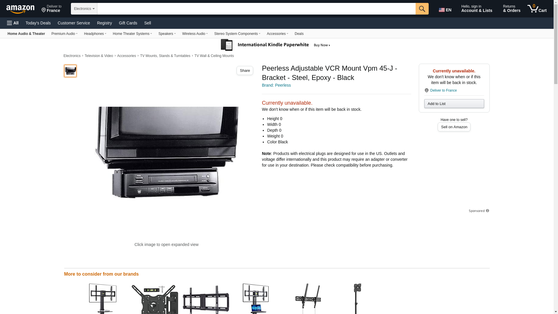 Peerless Adjustable VCR Mount Vpm 45-J - Bracket - Steel, Epoxy - Black