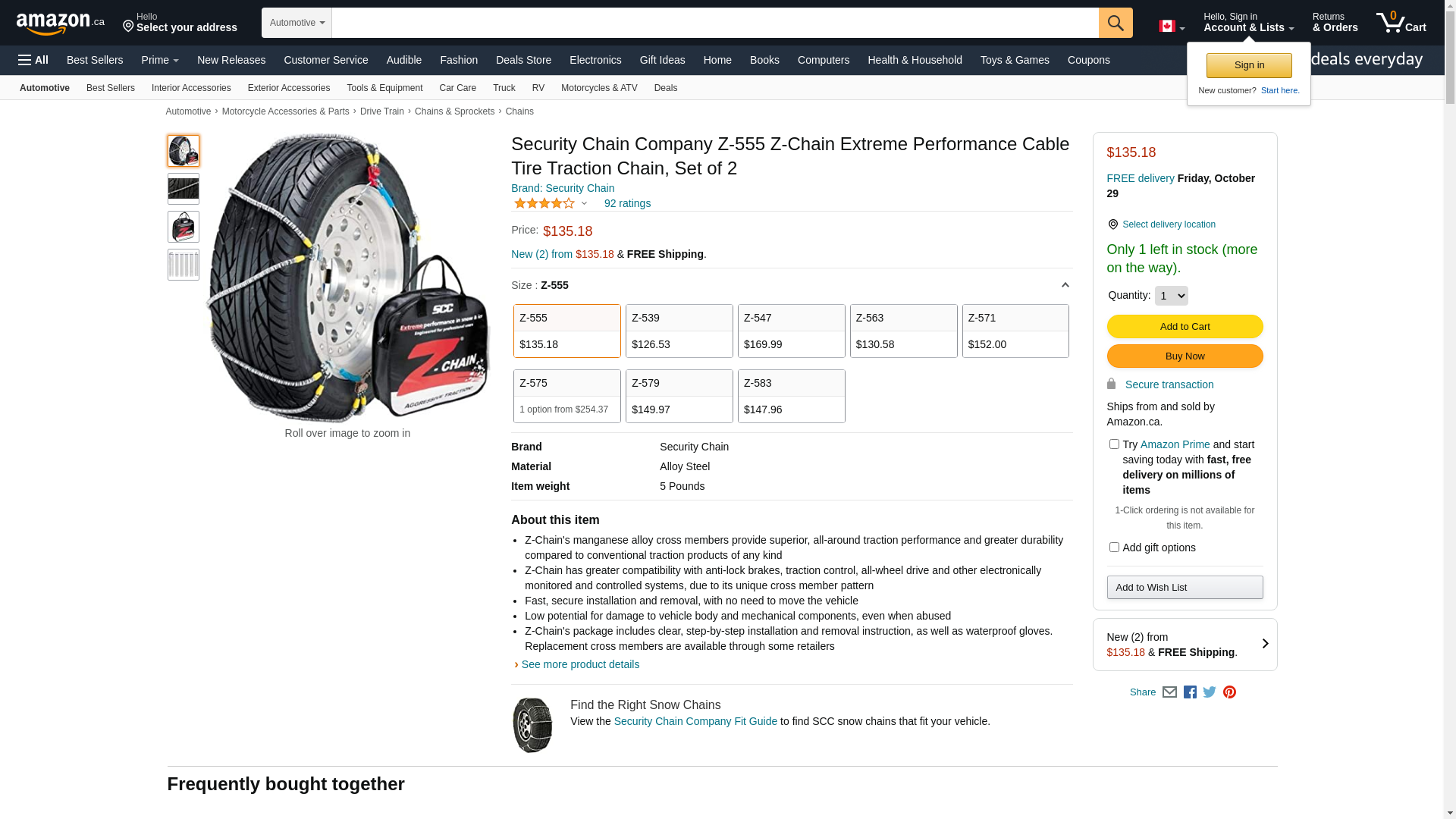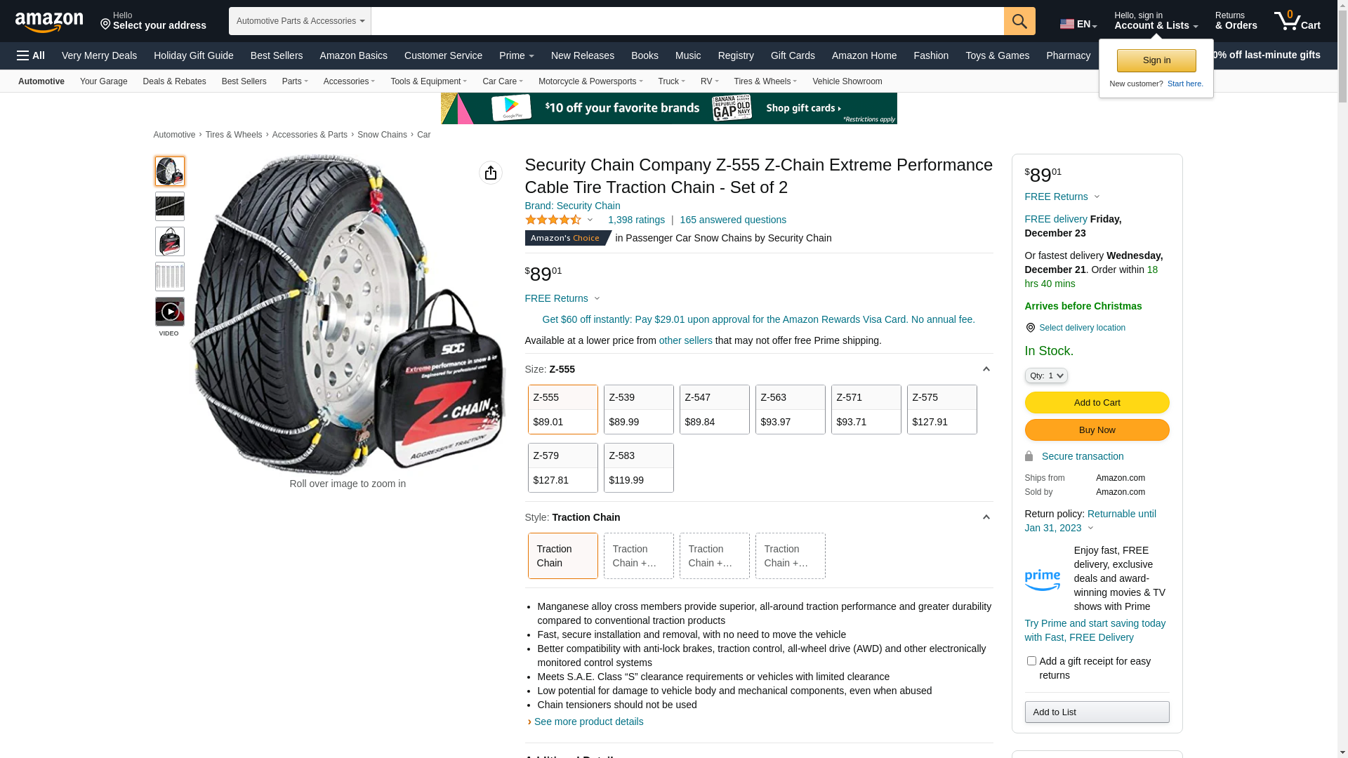 Security Chain Company Z-555 Z-Chain Extreme Performance Cable Tire Traction Chain - Set of 2
