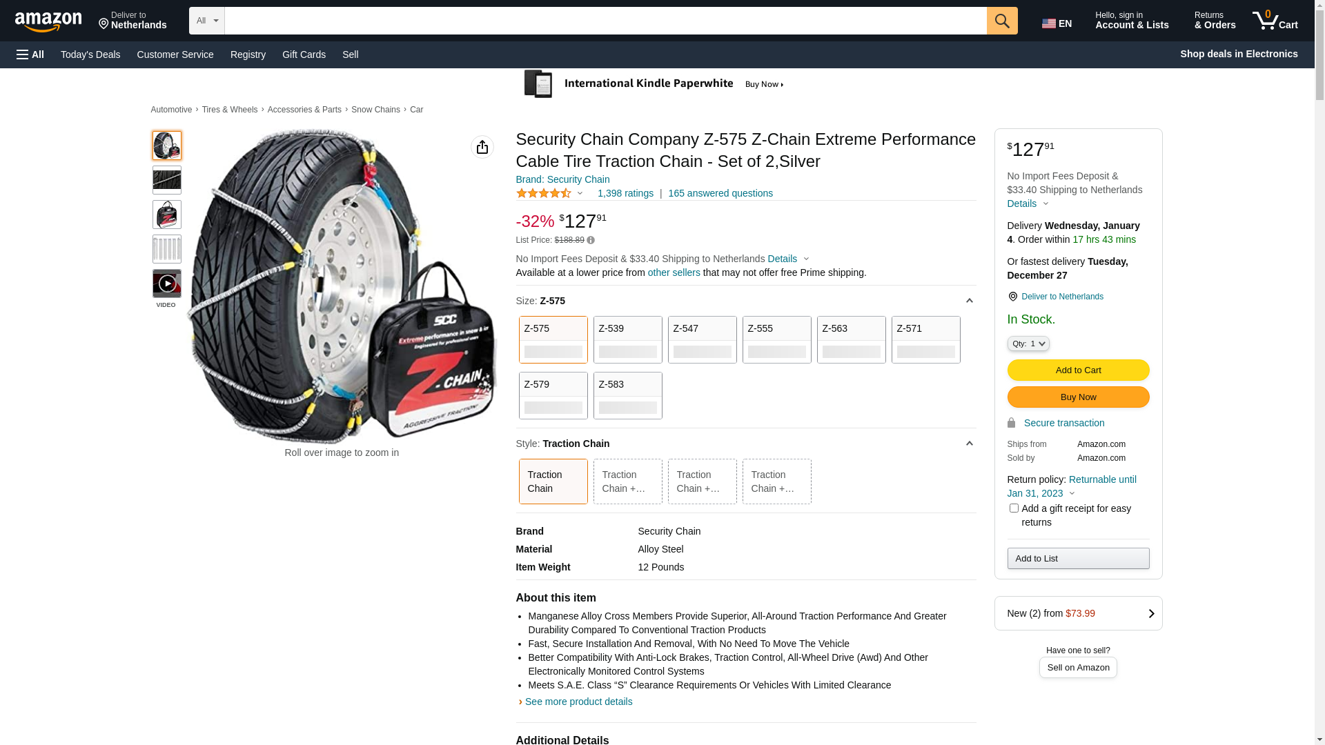 Security Chain Company Z-575 Z-Chain Extreme Performance Cable Tire Traction Chain - Set of 2,Silver