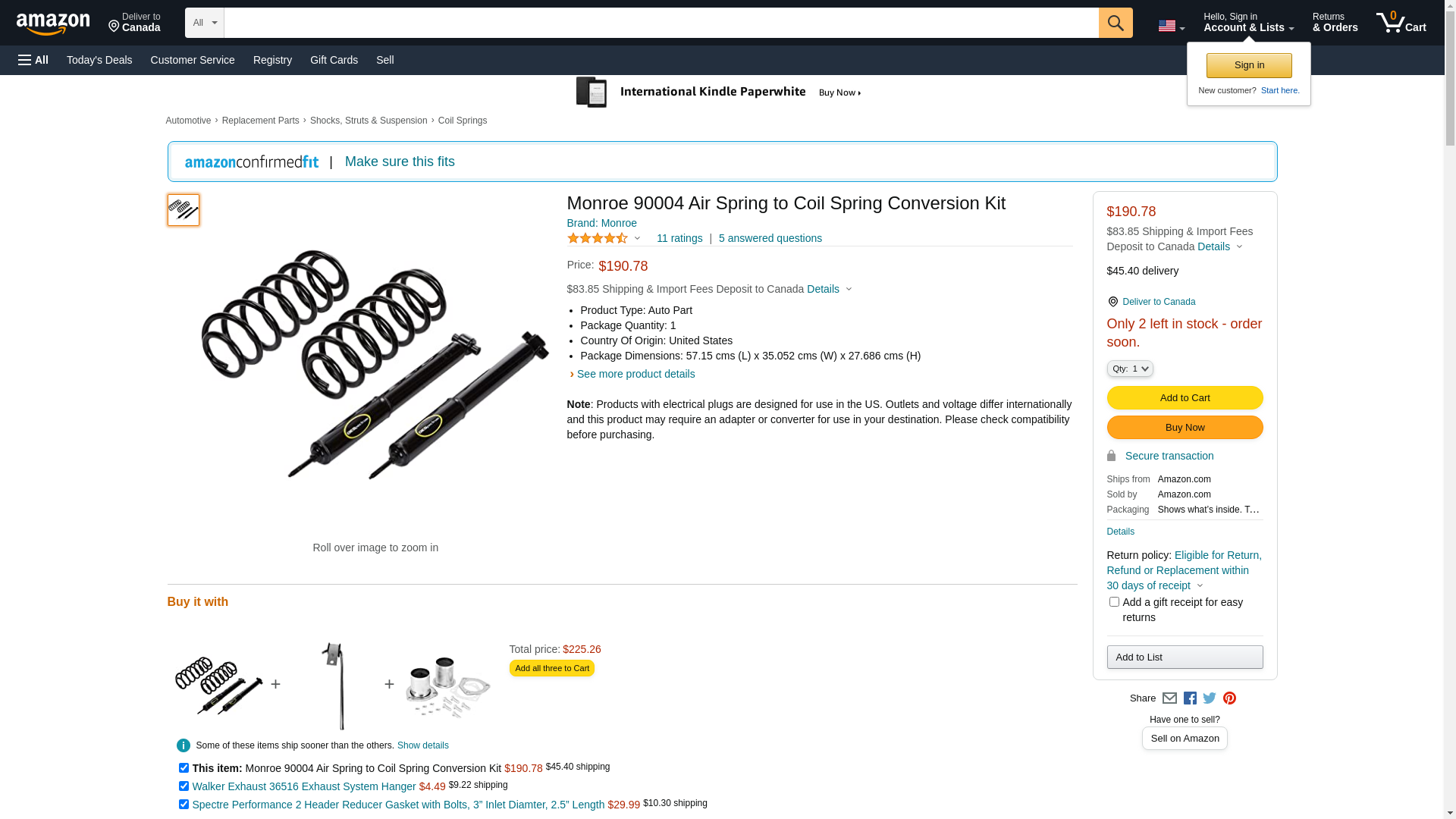 Monroe - 90004 - Monroe Air Spring to Coil Spring Conversion Kit