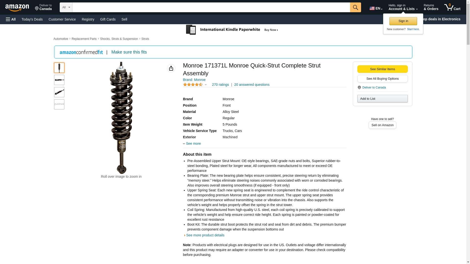 Monroe 171371L Monroe Quick-Strut Complete Strut Assembly