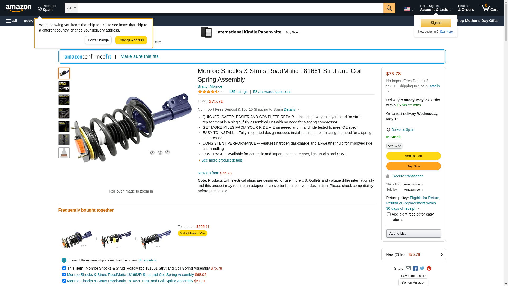 Monroe RoadMatic 181661 Suspension Strut and Coil Spring Assembly for Chevrolet Impala