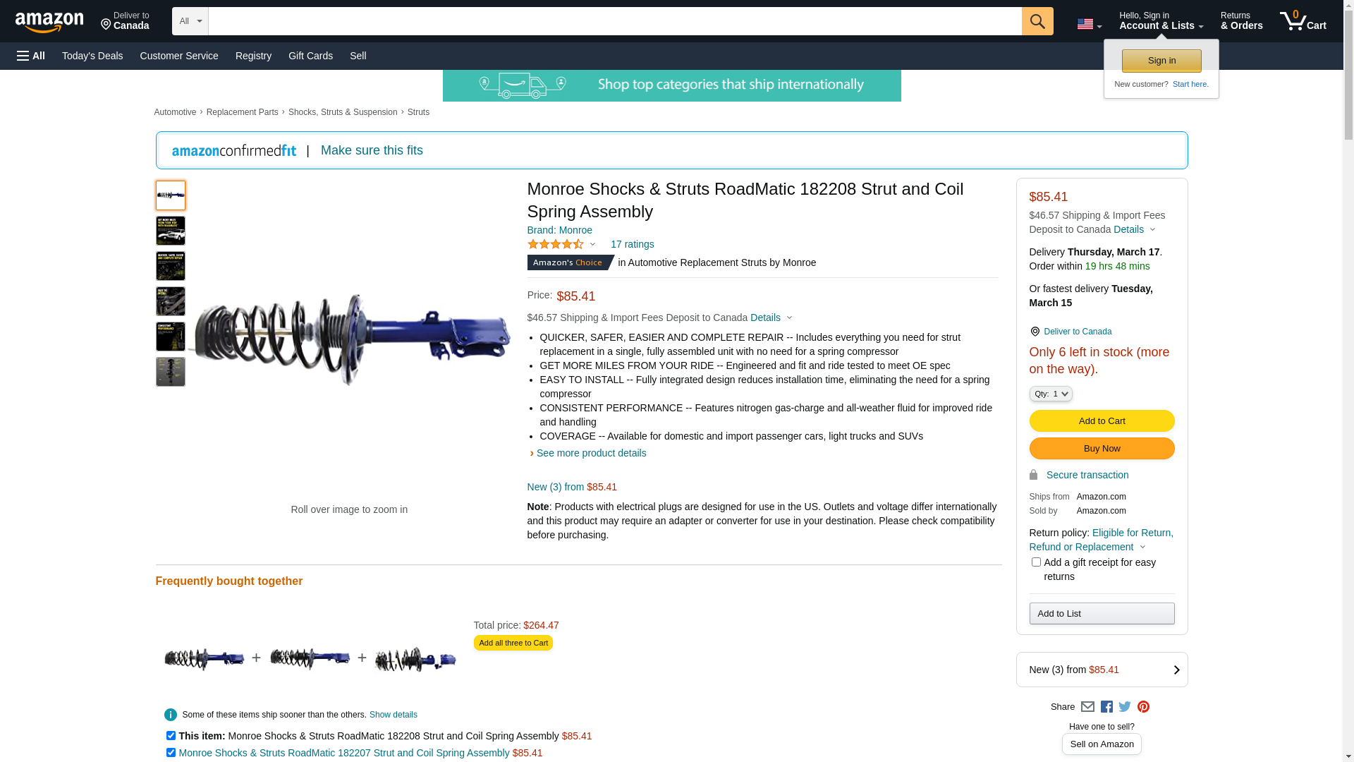 Monroe RoadMatic 182208 Suspension Strut and Coil Spring Assembly for Toyota Camry