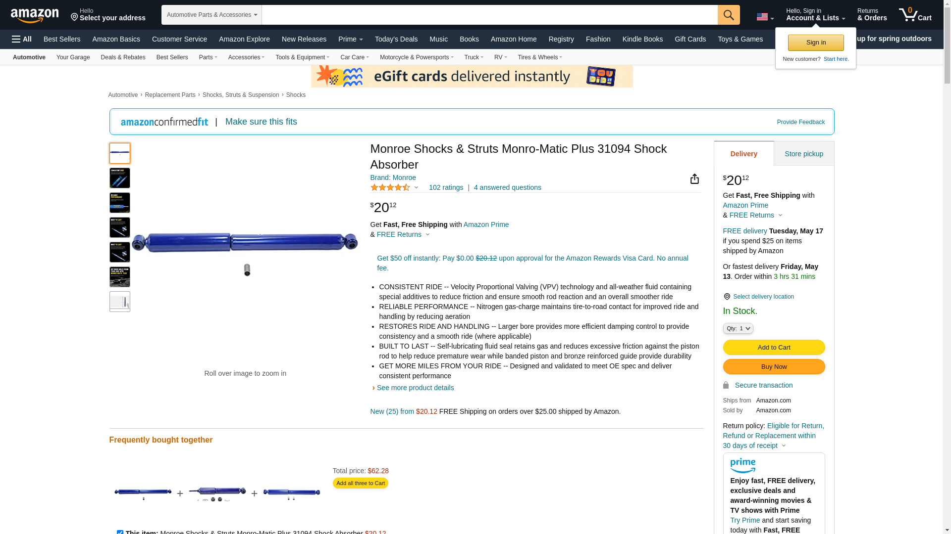 | Manufacturer | Monroe Shocks & Struts |