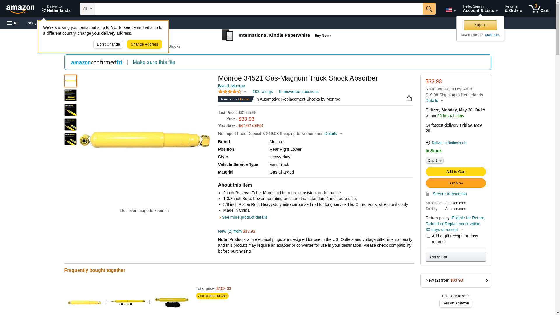 - BUY WITH CONFIDENCE -- Comes with Monroe’s Limited Lifetime Warranty and exclusive Feel the Difference Guarantee